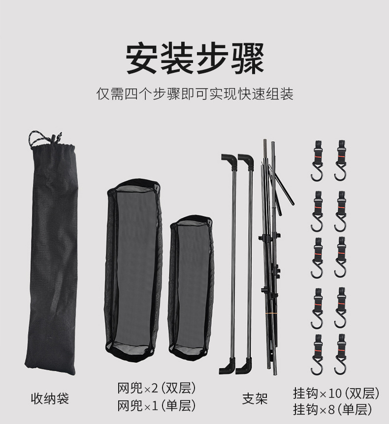 • 고급스러운 더블 레이어 L "메시백 2개 포함"에는 후크 10개가 포함되어 있습니다.