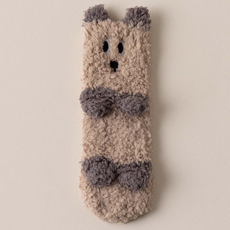 가을과 겨울 두꺼운 기모 따뜻한 바닥 양말 어린이 일본 귀여운 강아지 봉제 중간 양말 홈 수면 양말