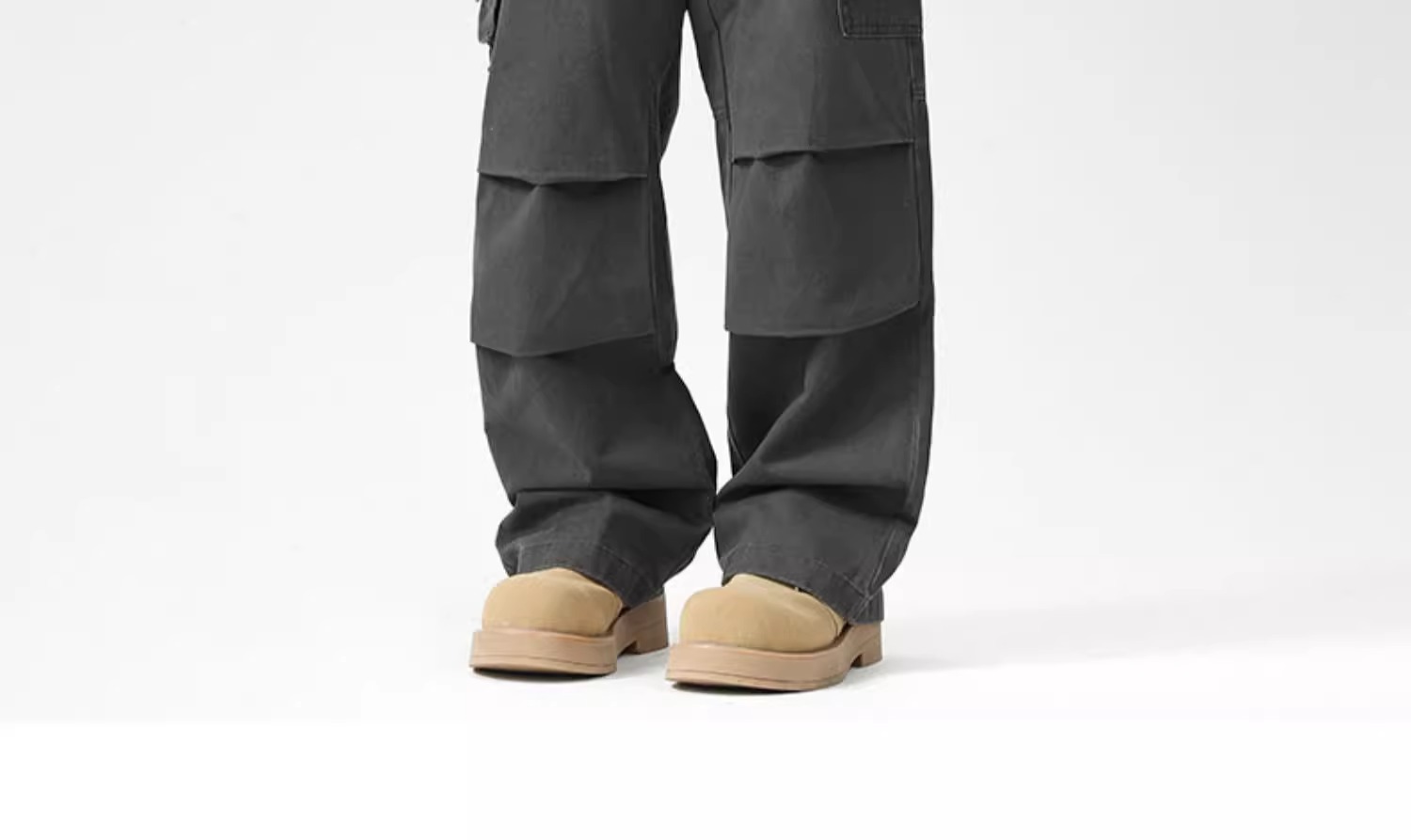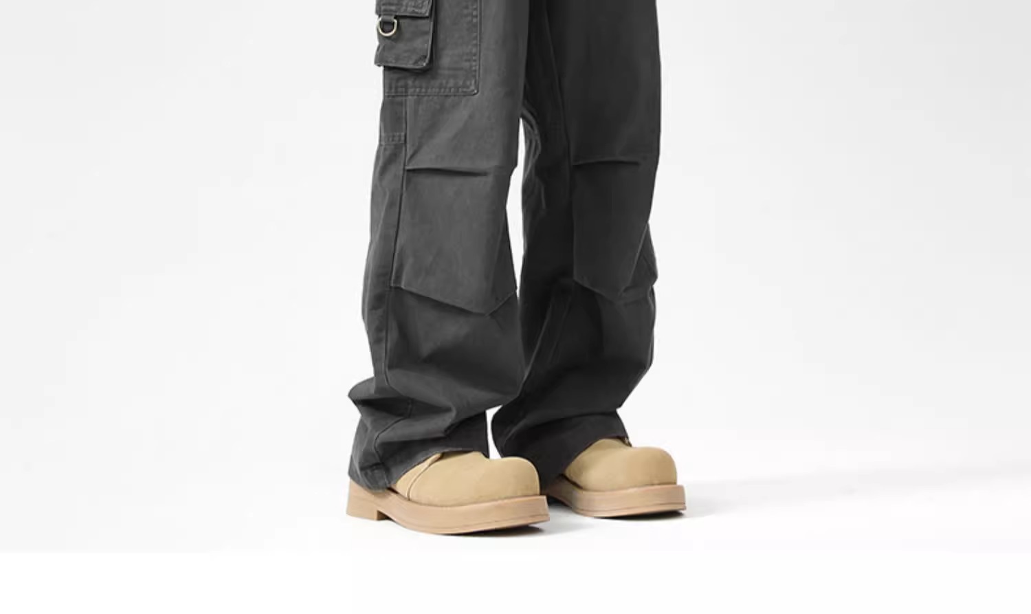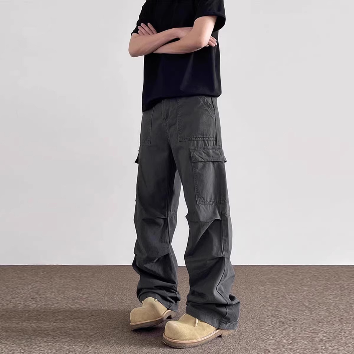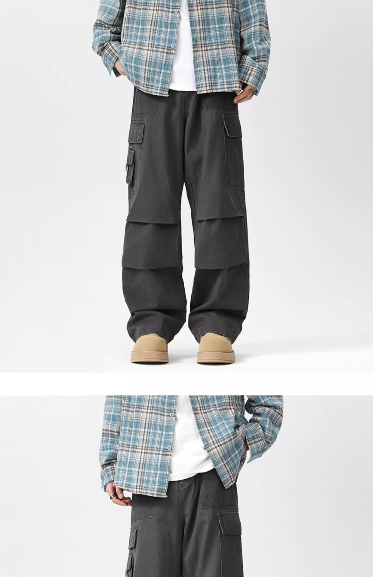 미국 스타일 빈티지 세탁 크레인 바지 남성 가을 패션 브랜드 틈새 느슨한 스트레이트 와이드 다리 바지 포켓 낙하산 바지