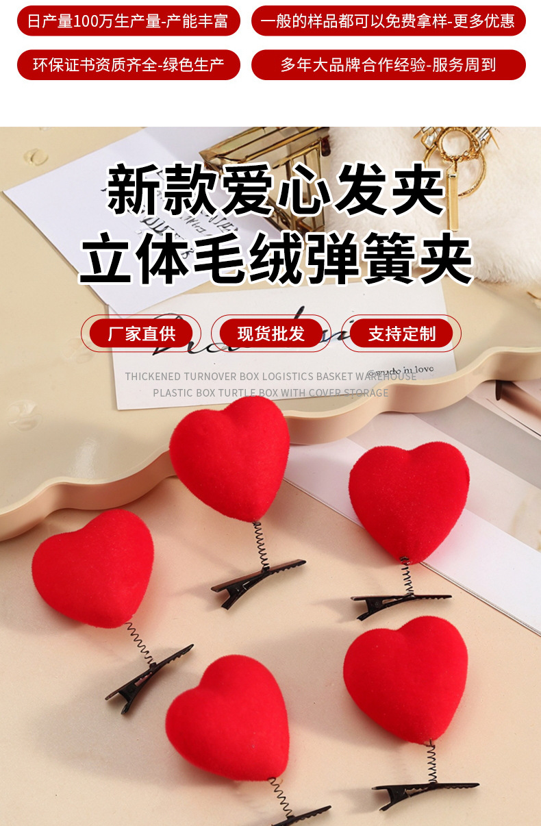 새로운 봄 하트 모양의 머리 장식 헤어 클립 사랑 판매 귀여운 헤어 액세서리 작은 선물 어린이 헤어 액세서리 도매