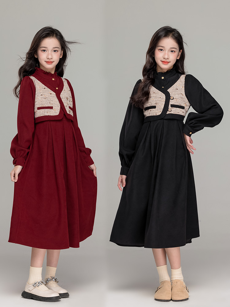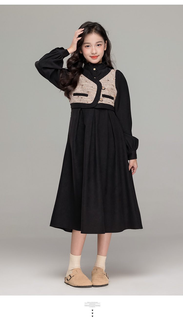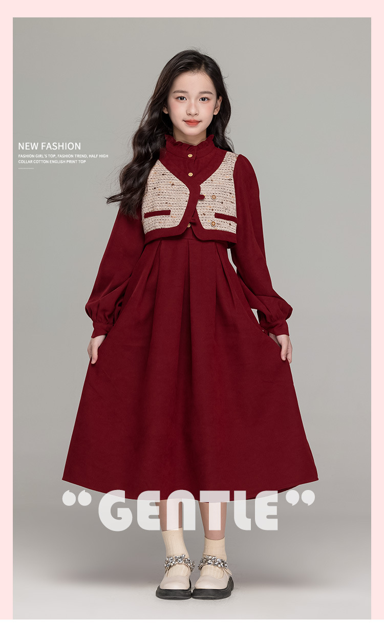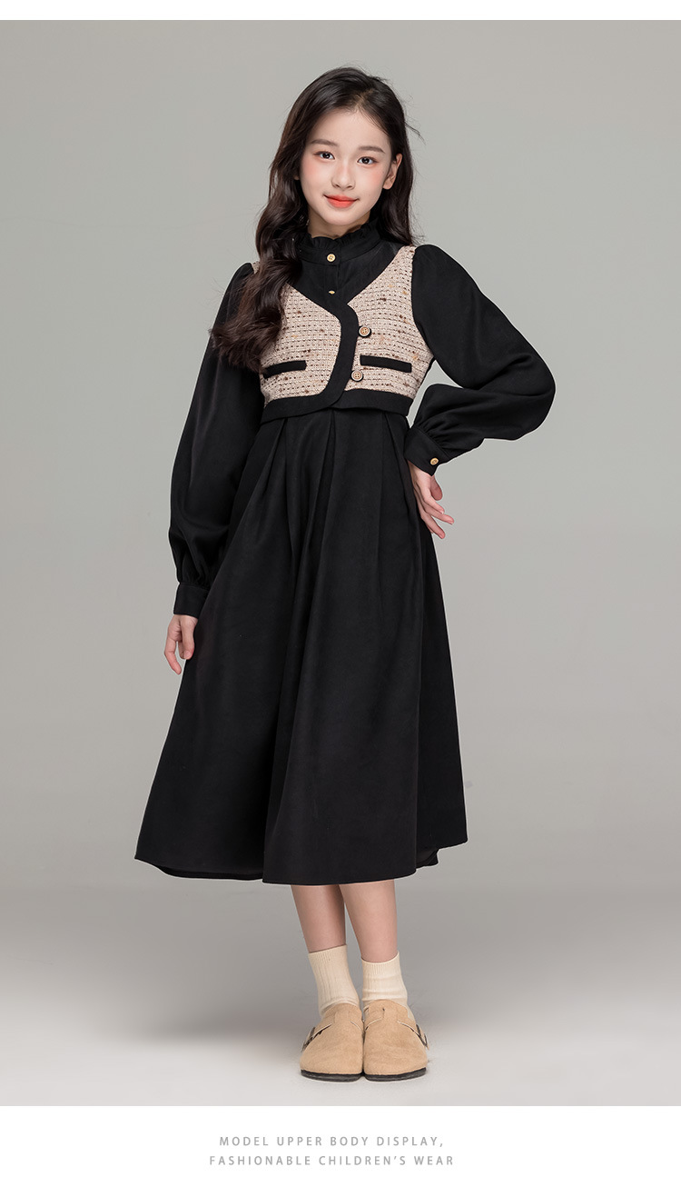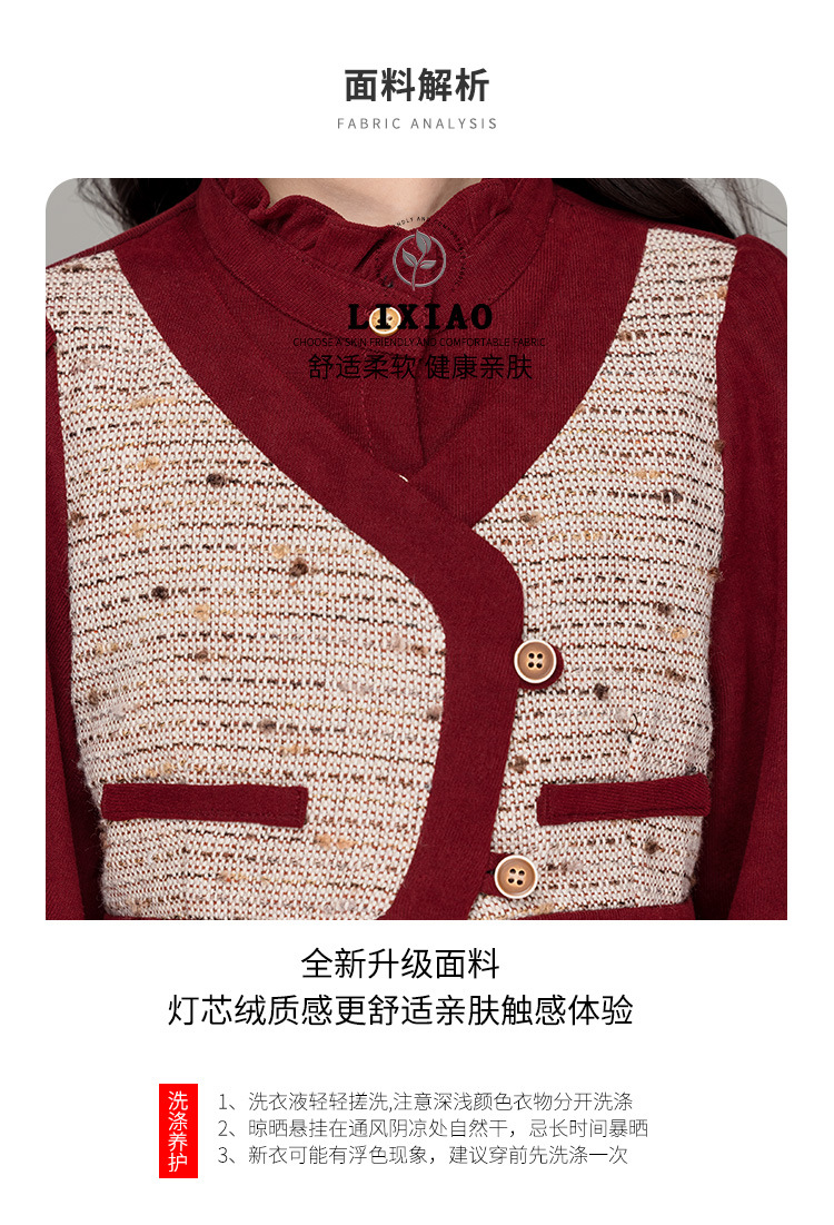 精选灯芯绒磨毛面料,面料有一定的厚度,手感柔软亲肤,立体有型且有抗皱效果,穿一天都很质感,杏色马甲面料选用小香风粗纺面料,,精细做工,高档品质,拿到手突显品质,亲子装,大人小孩都能轻松穿出名媛淑女气质风