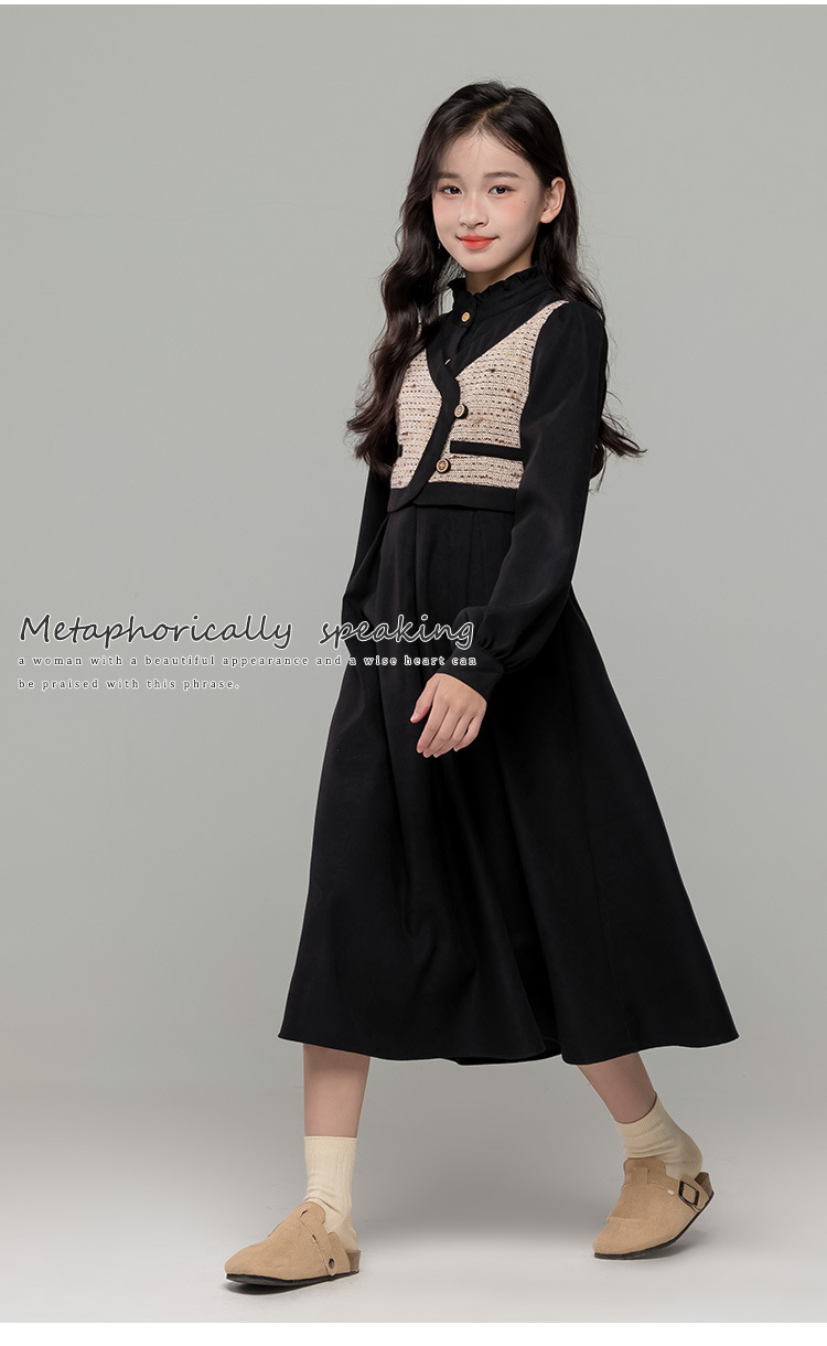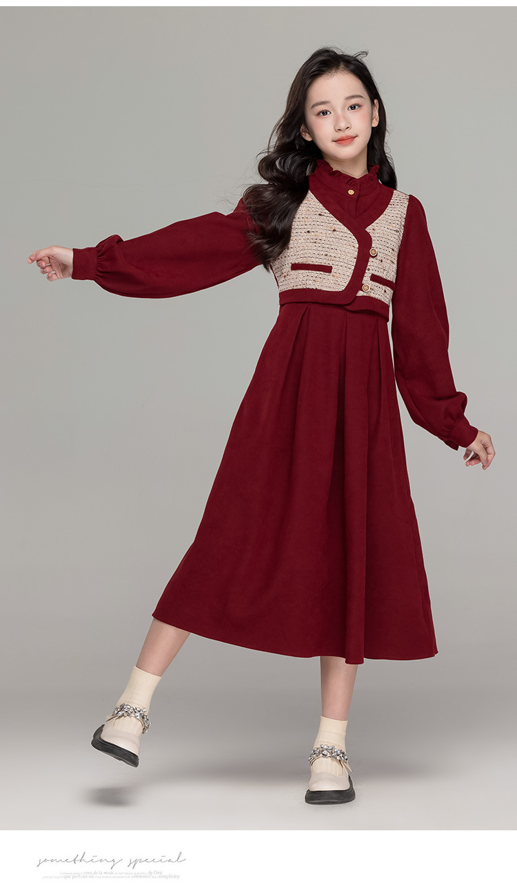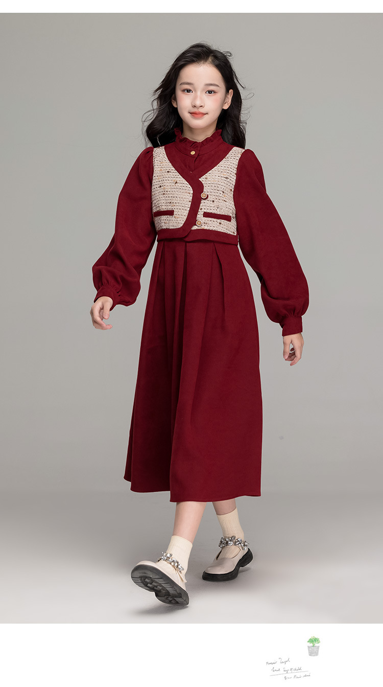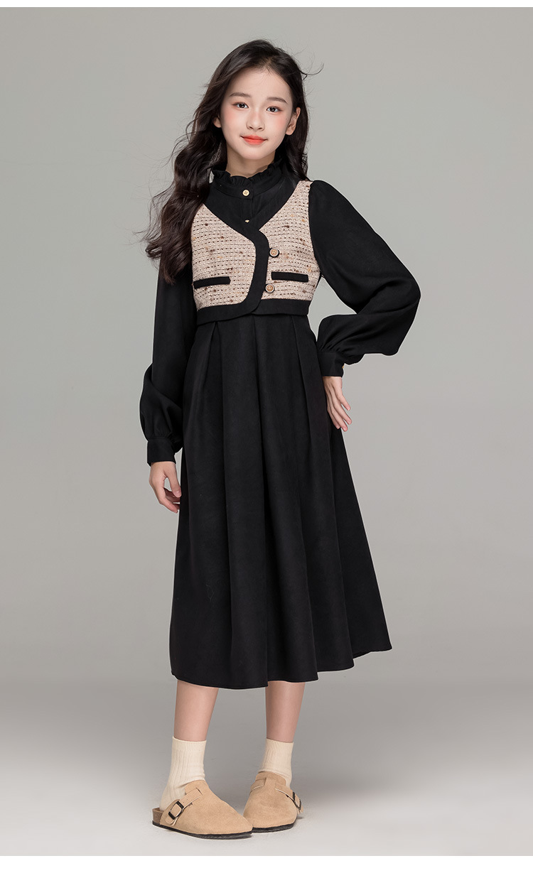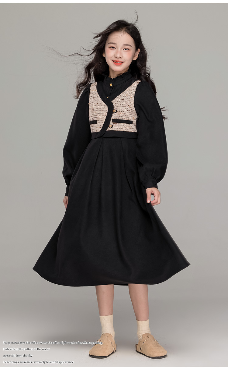 精选灯芯绒磨毛面料,面料有一定的厚度,手感柔软亲肤,立体有型且有抗皱效果,穿一天都很质感,杏色马甲面料选用小香风粗纺面料,,精细做工,高档品质,拿到手突显品质,亲子装,大人小孩都能轻松穿出名媛淑女气质风