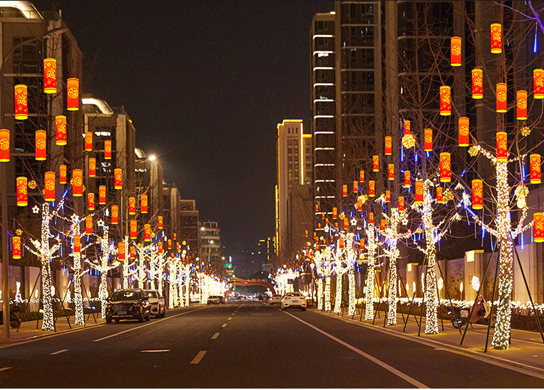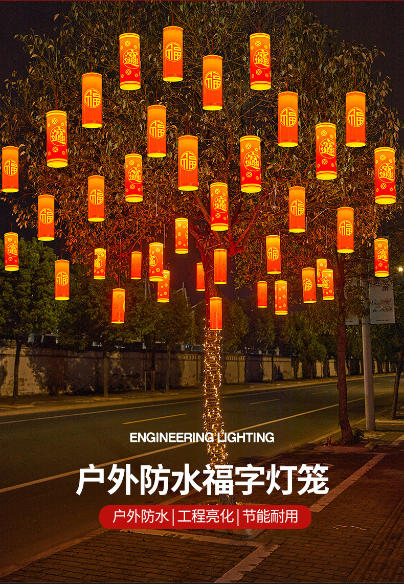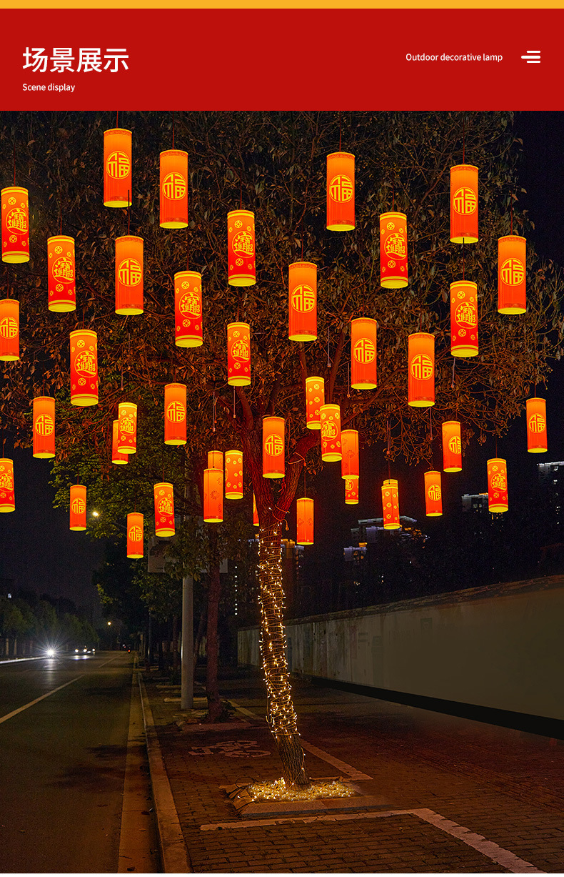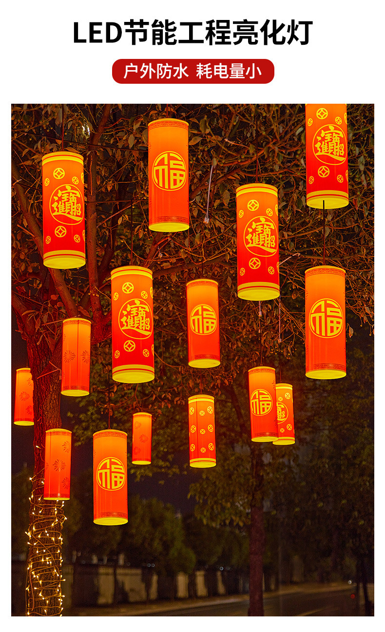 Led 교수형 나무 램프 봄 축제 새해 조명 폭죽 램프 야외 방수 자외선 차단제 행운의 단어 행운 보물 장식 램프