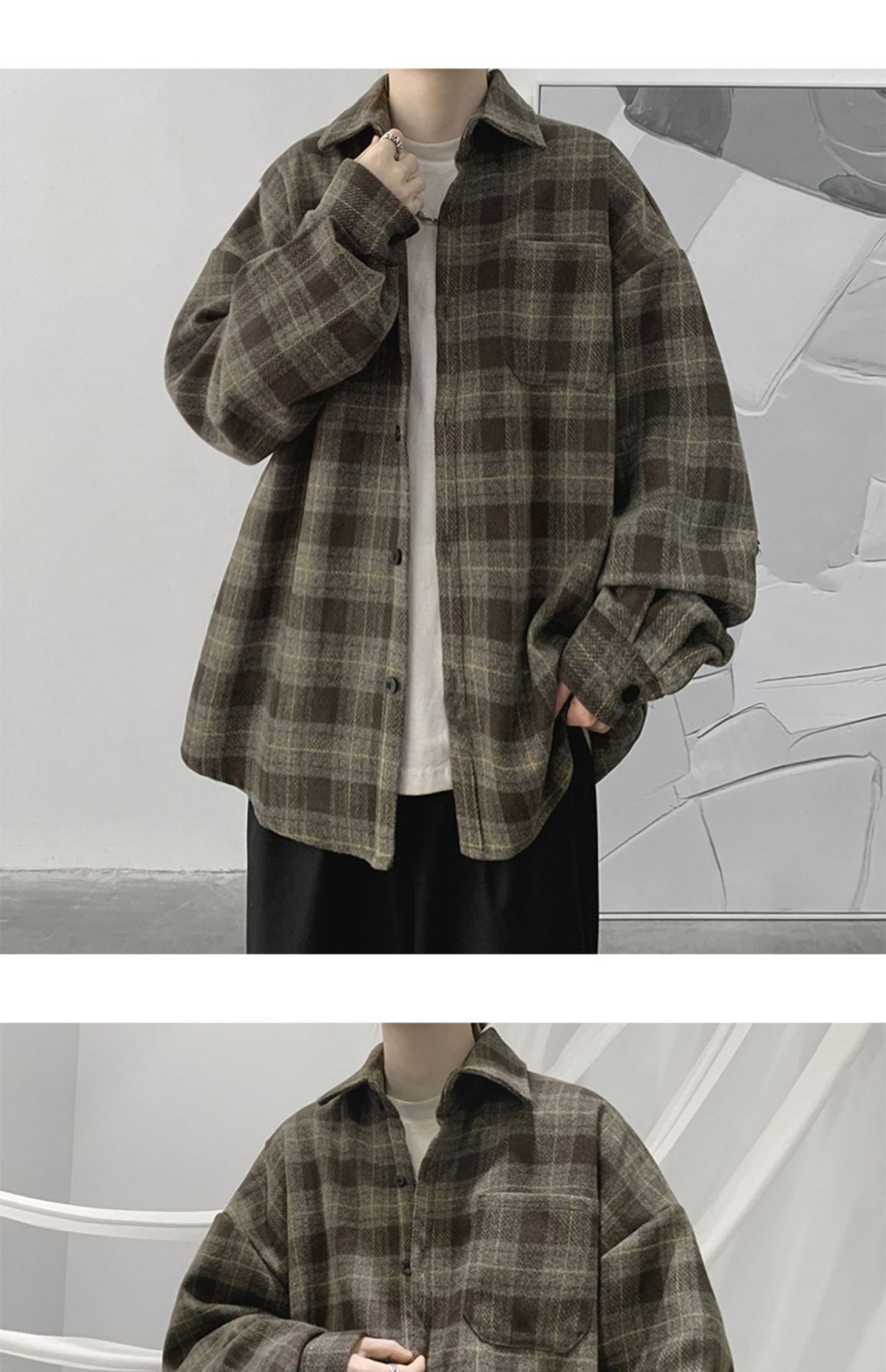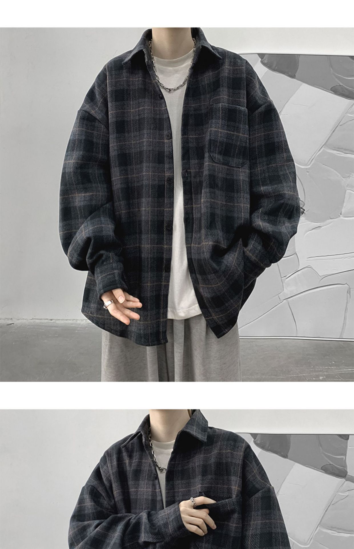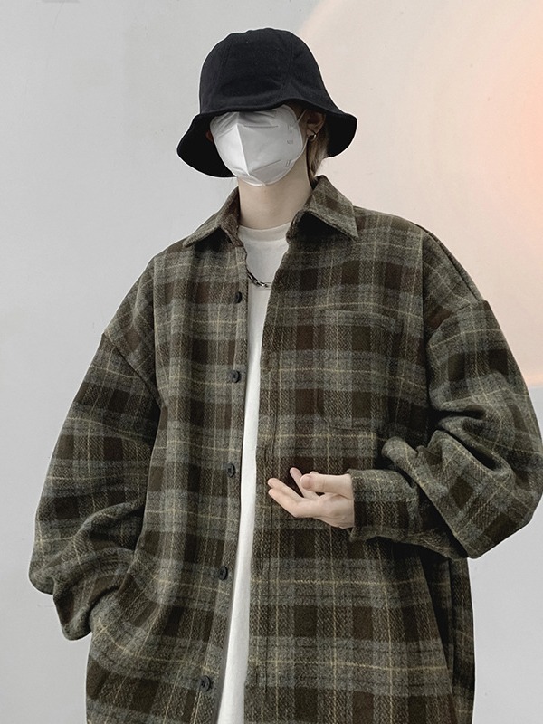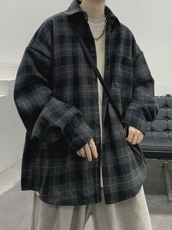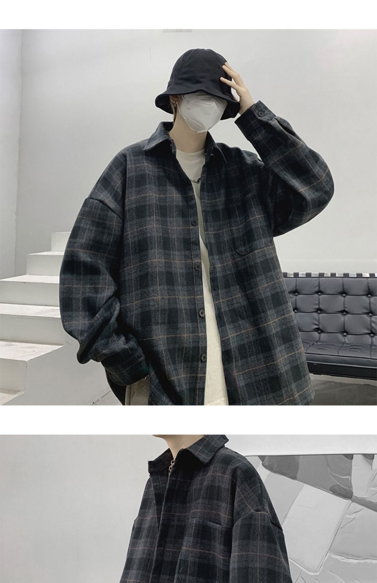 격자 무늬 셔츠 남자의 긴팔 홍콩 스타일 코트 봄과 가을 Pui Shuai 일본 스타일 최고 가을 패션 브랜드 작업 원피스 셔츠스토어 가기
