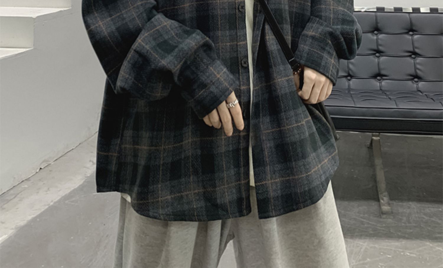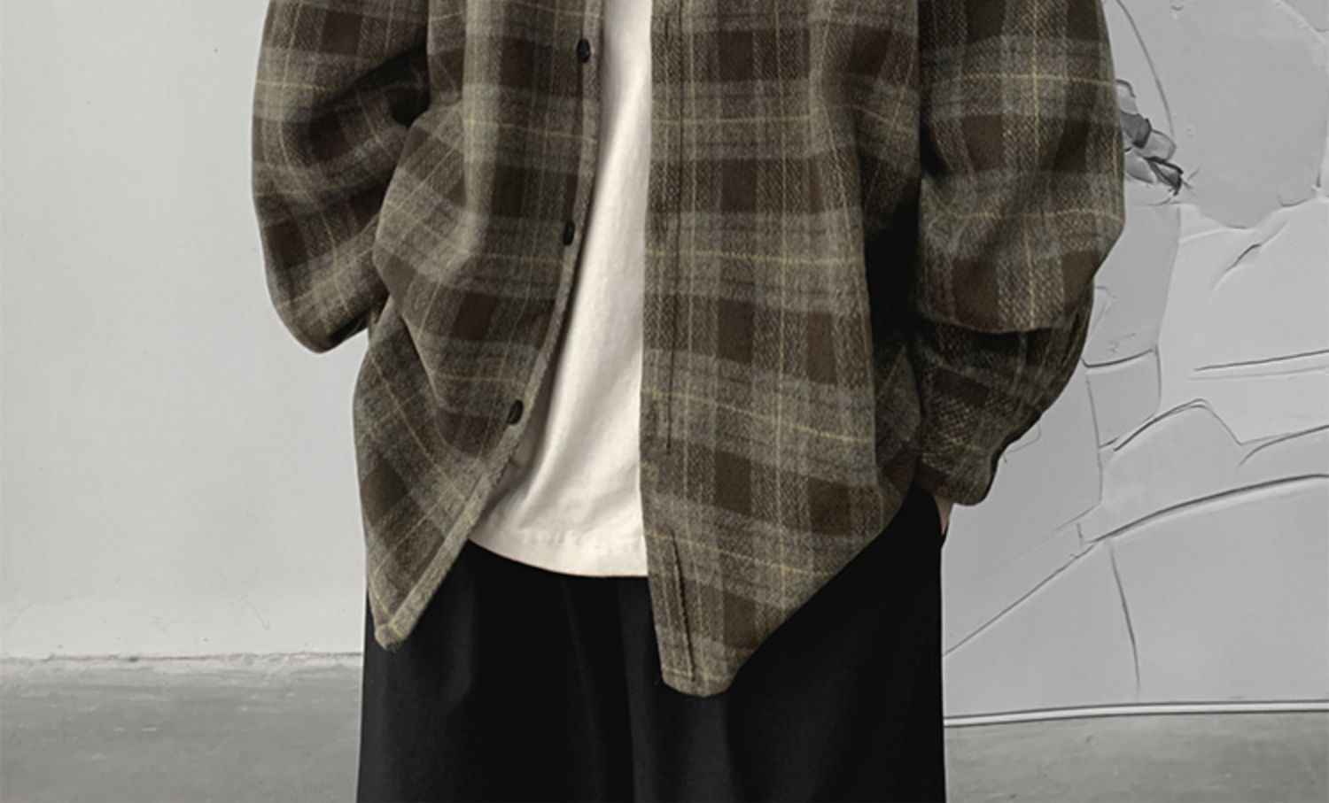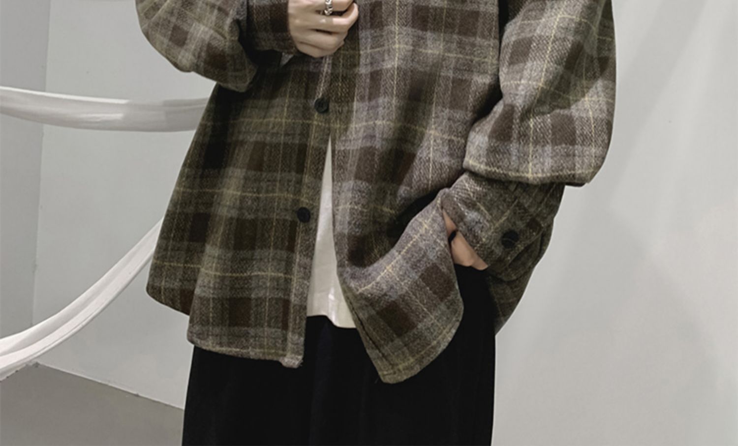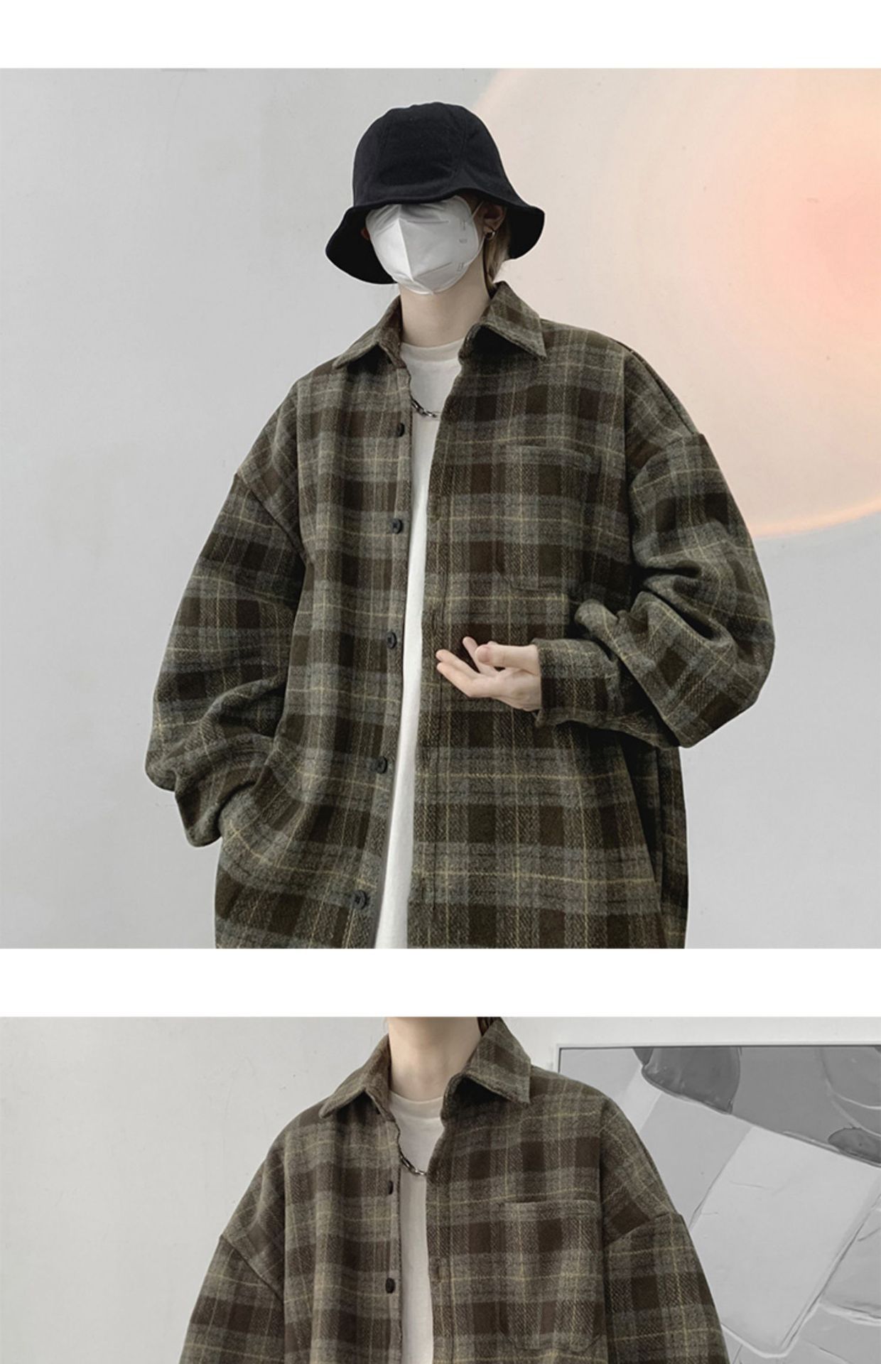 격자 무늬 셔츠 남자의 긴팔 홍콩 스타일 코트 봄과 가을 Pui Shuai 일본 스타일 최고 가을 패션 브랜드 작업 원피스 셔츠스토어 가기