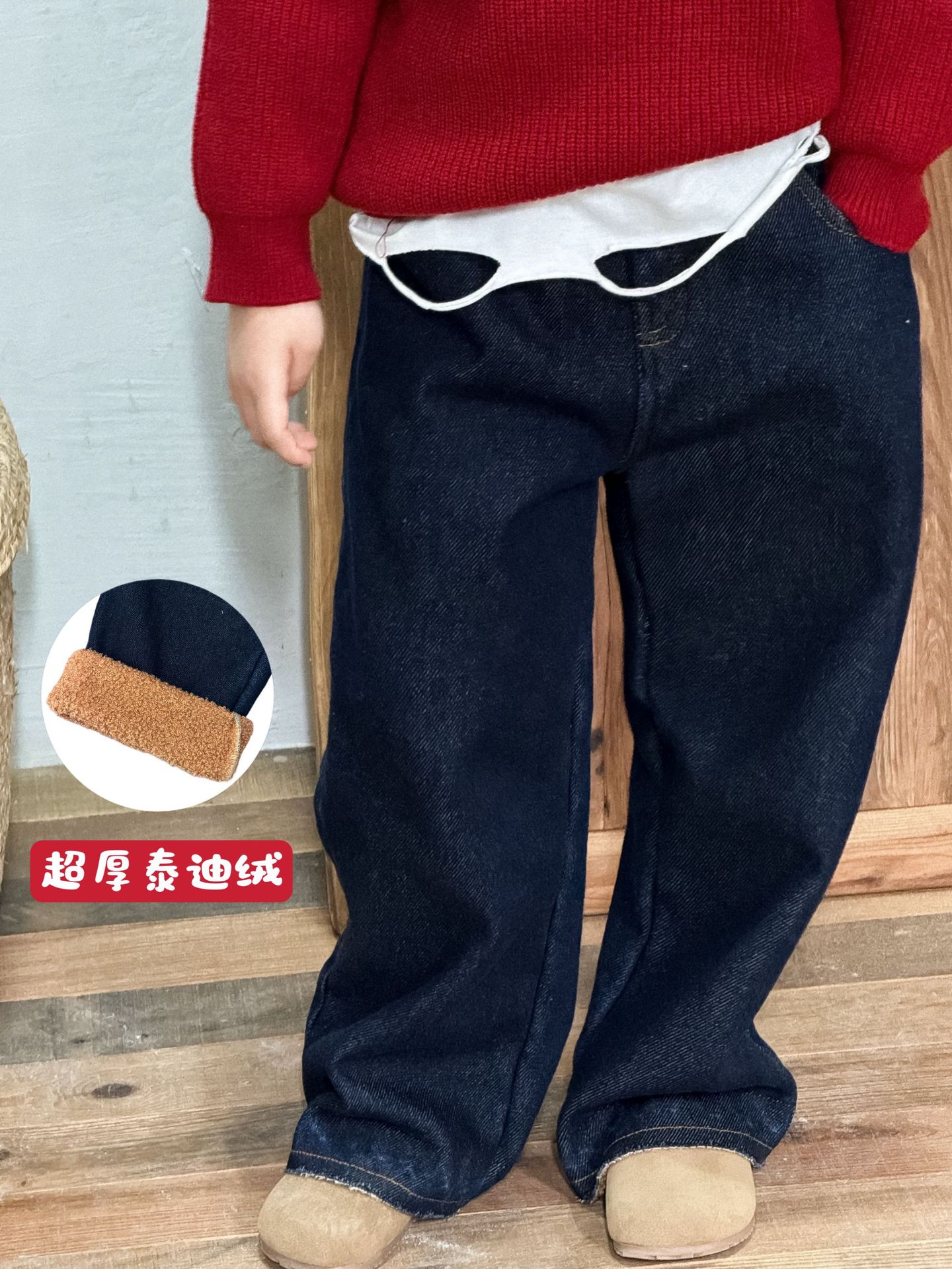 Hemerocallis 소스 2024 겨울 소년 소녀 조수 브랜드 스트레이트 청바지에 대한 어린이 기모 청바지의 새로운 한국 버전스토어 가기