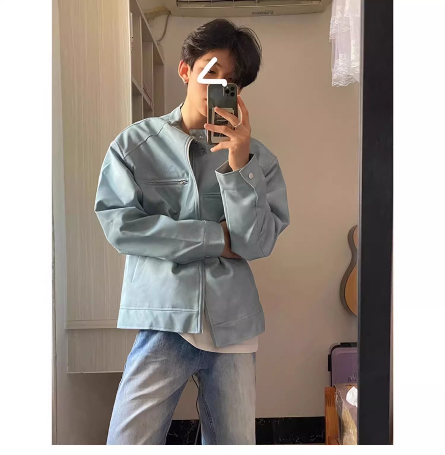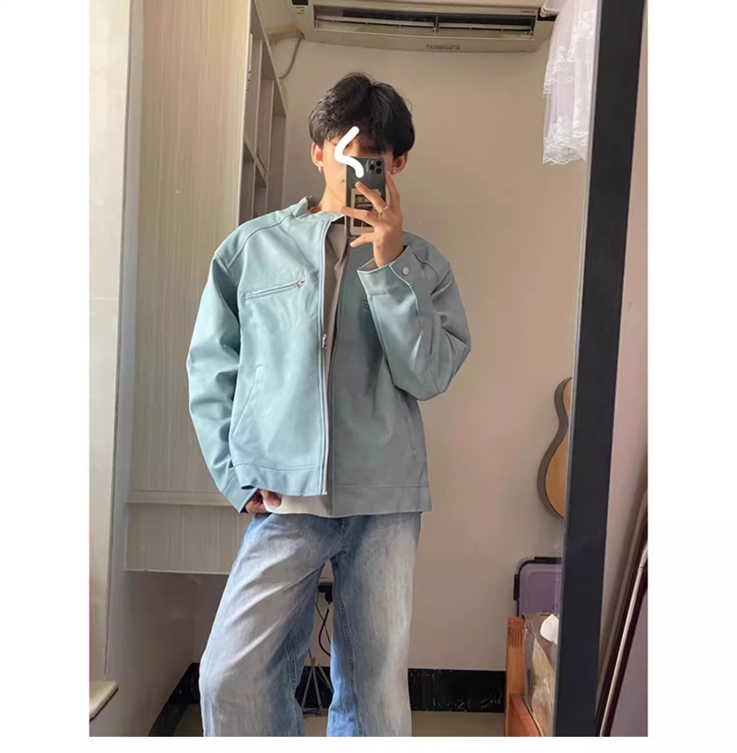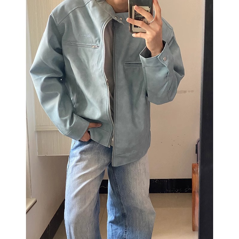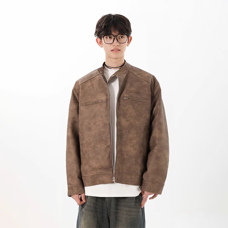 아메리칸 스타일 레트로 간단한 칼라 재킷 남자 2024 가을 새로운 스타일 우수한 비행가 가죽 자켓 탑스토어 가기
