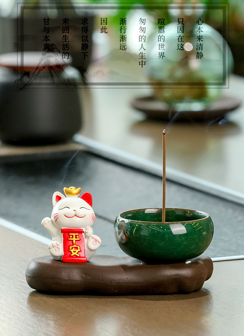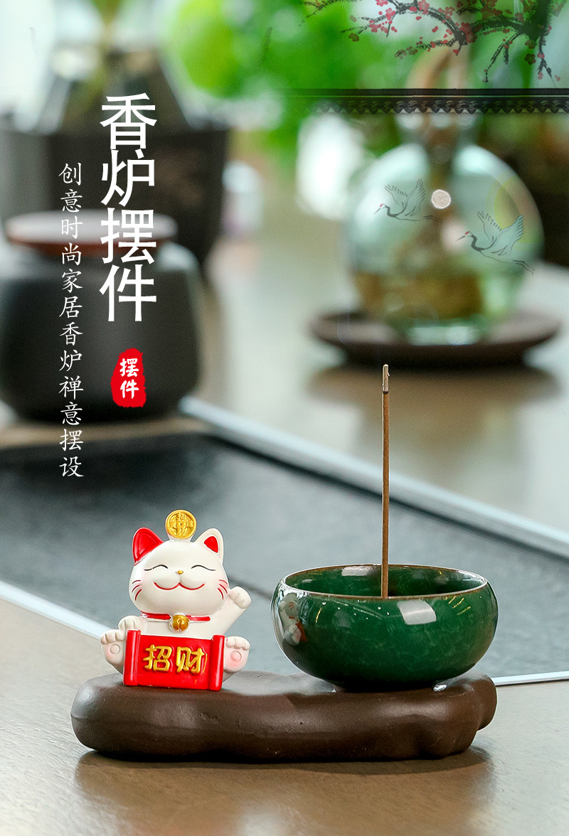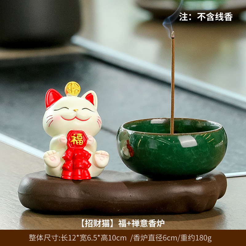 • 행운의 고양이 + 젠 향판 + 합금 향