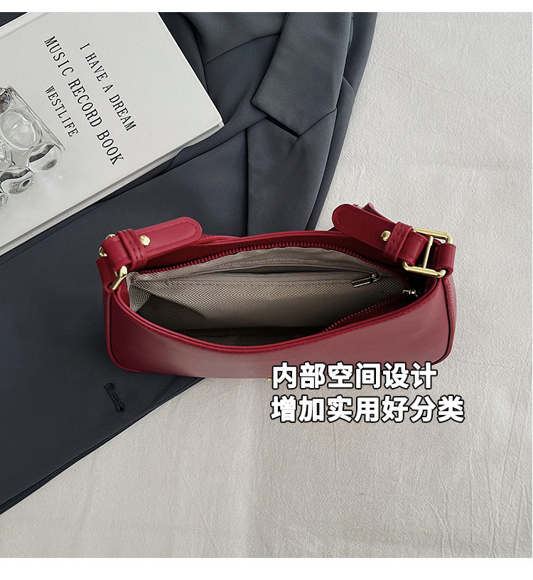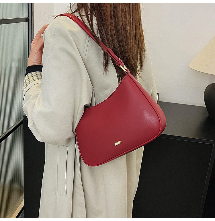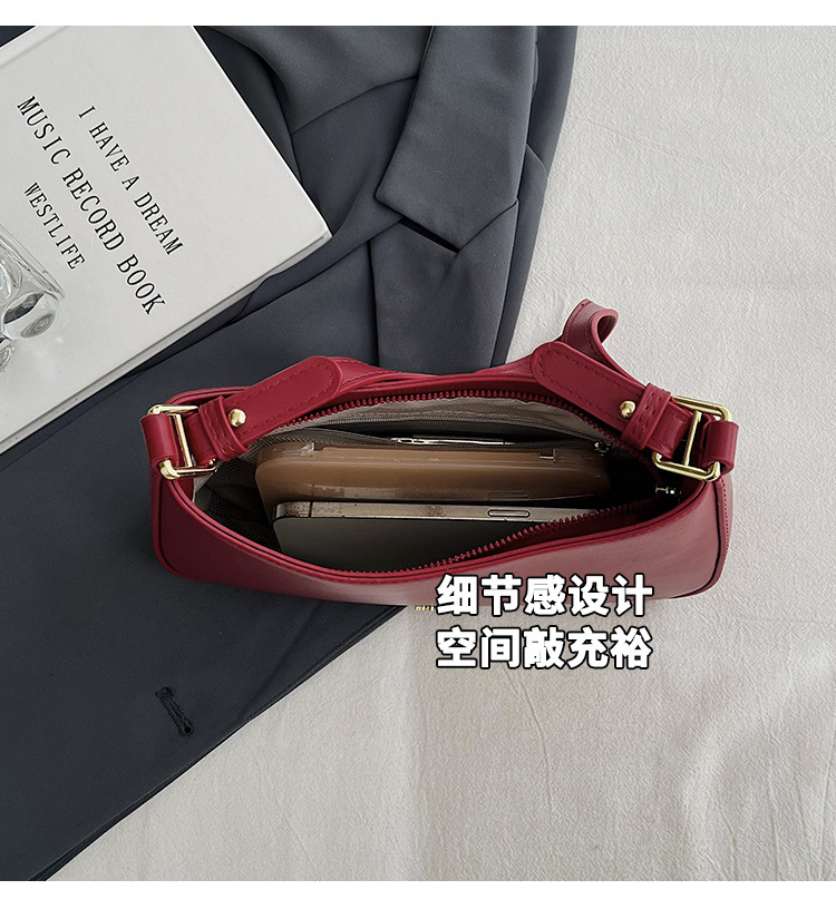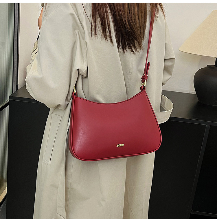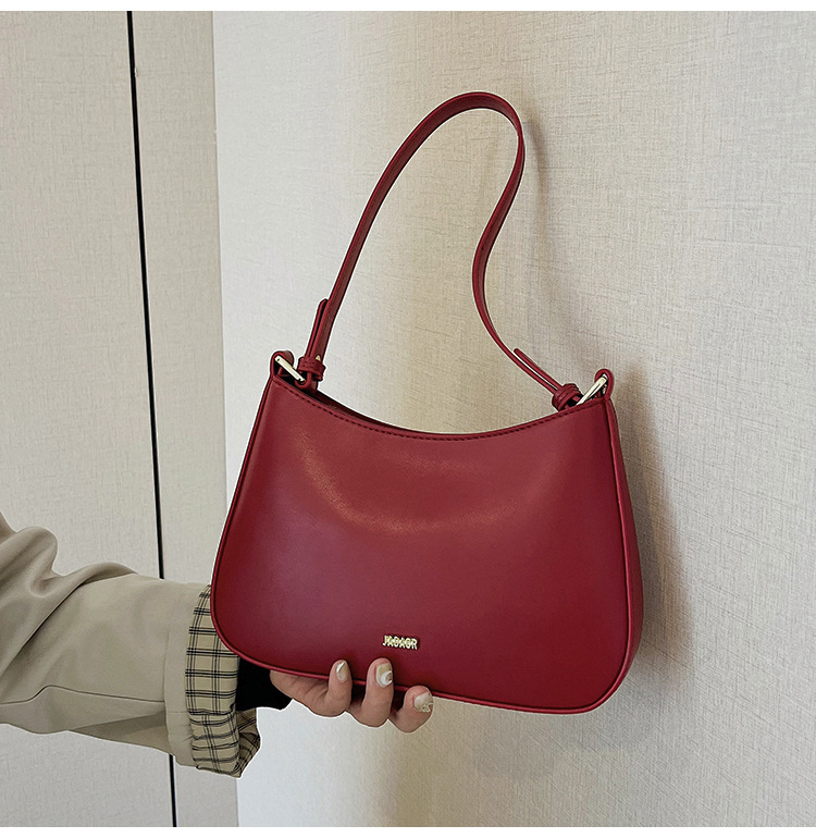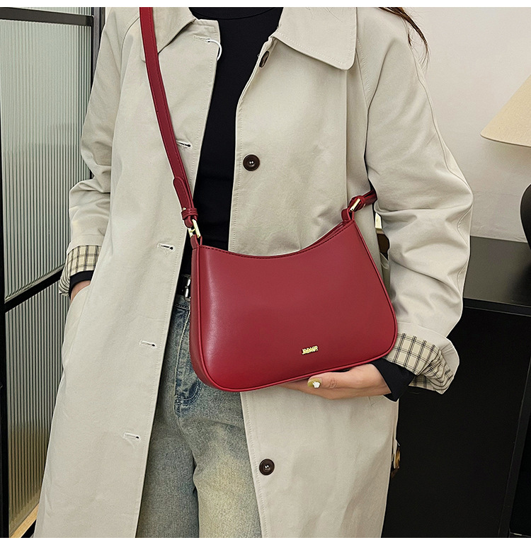 跨境腋下包复古酒红色结婚新娘包女士斜挎包牛皮包高级感法棍包女