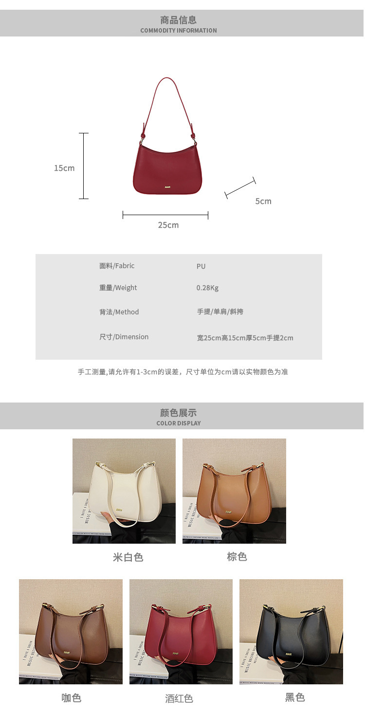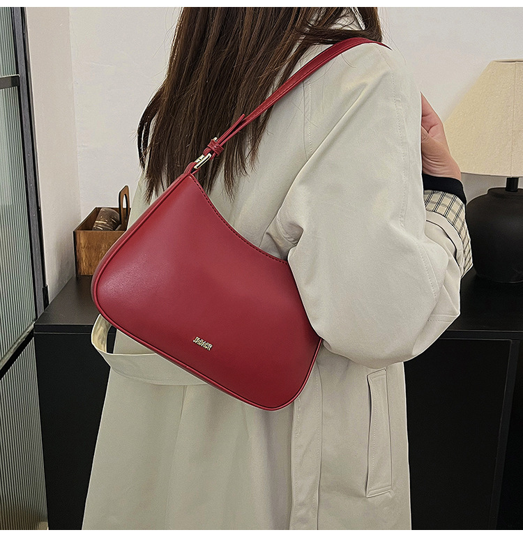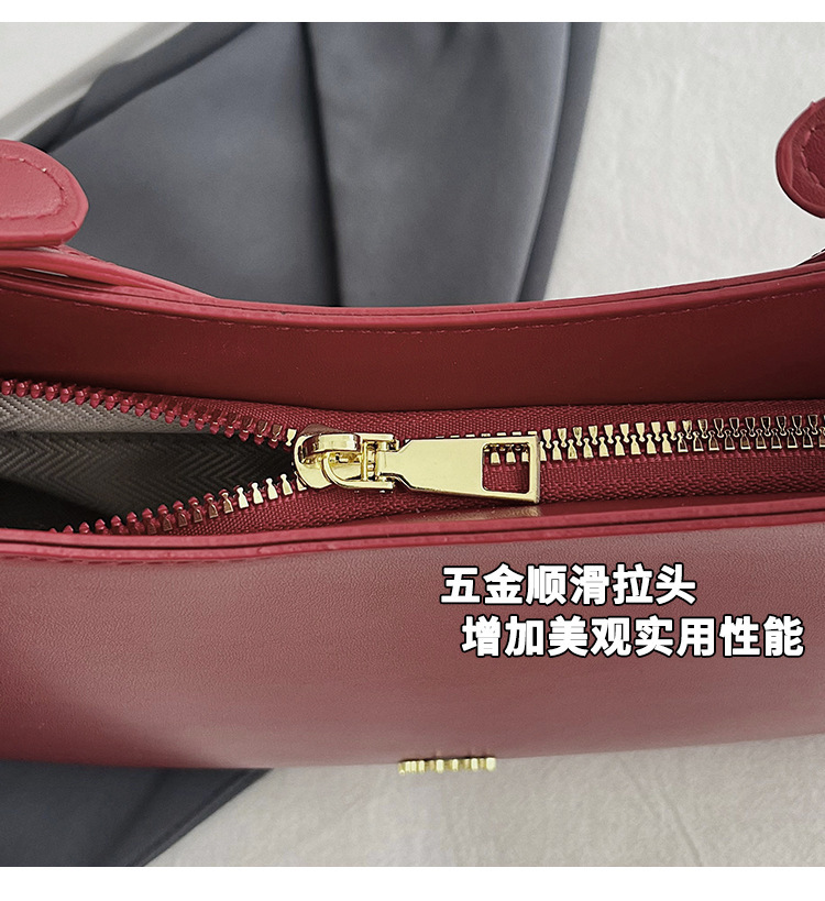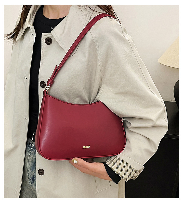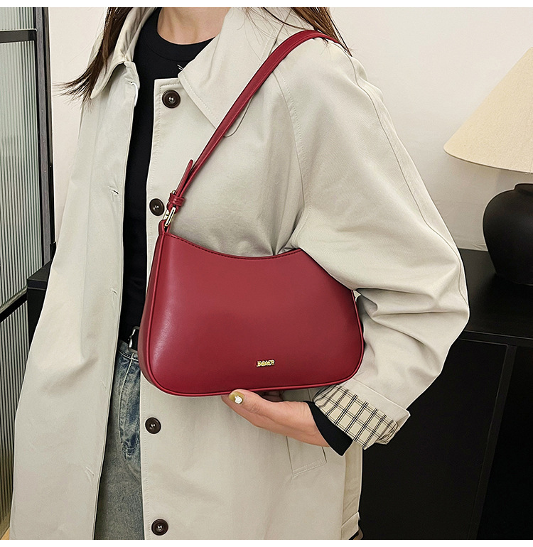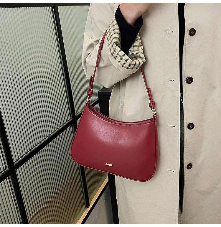 跨境腋下包复古酒红色结婚新娘包女士斜挎包牛皮包高级感法棍包女