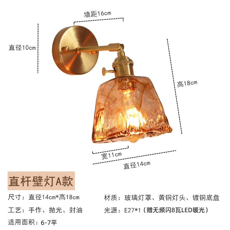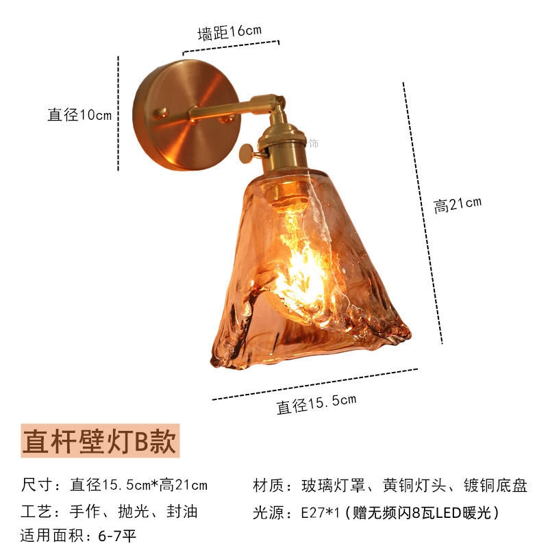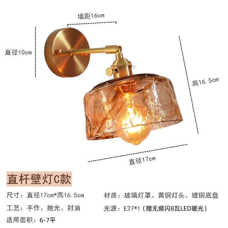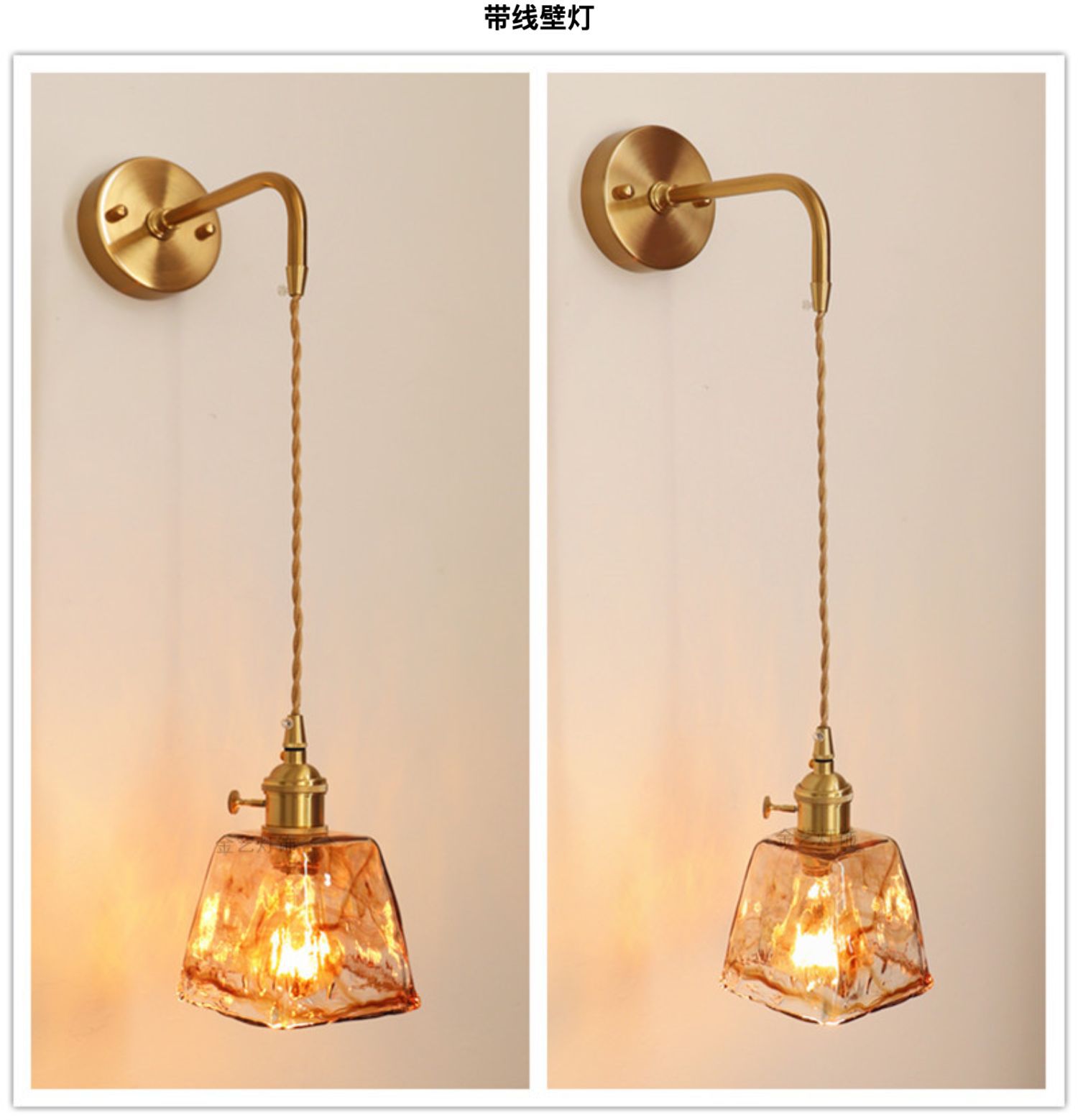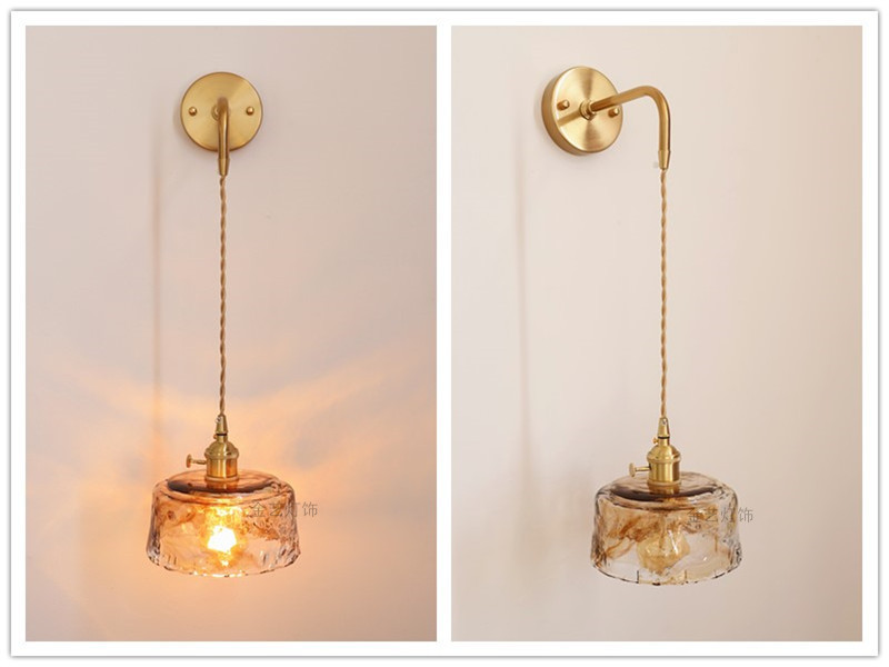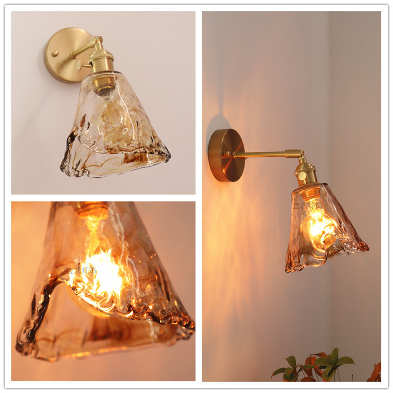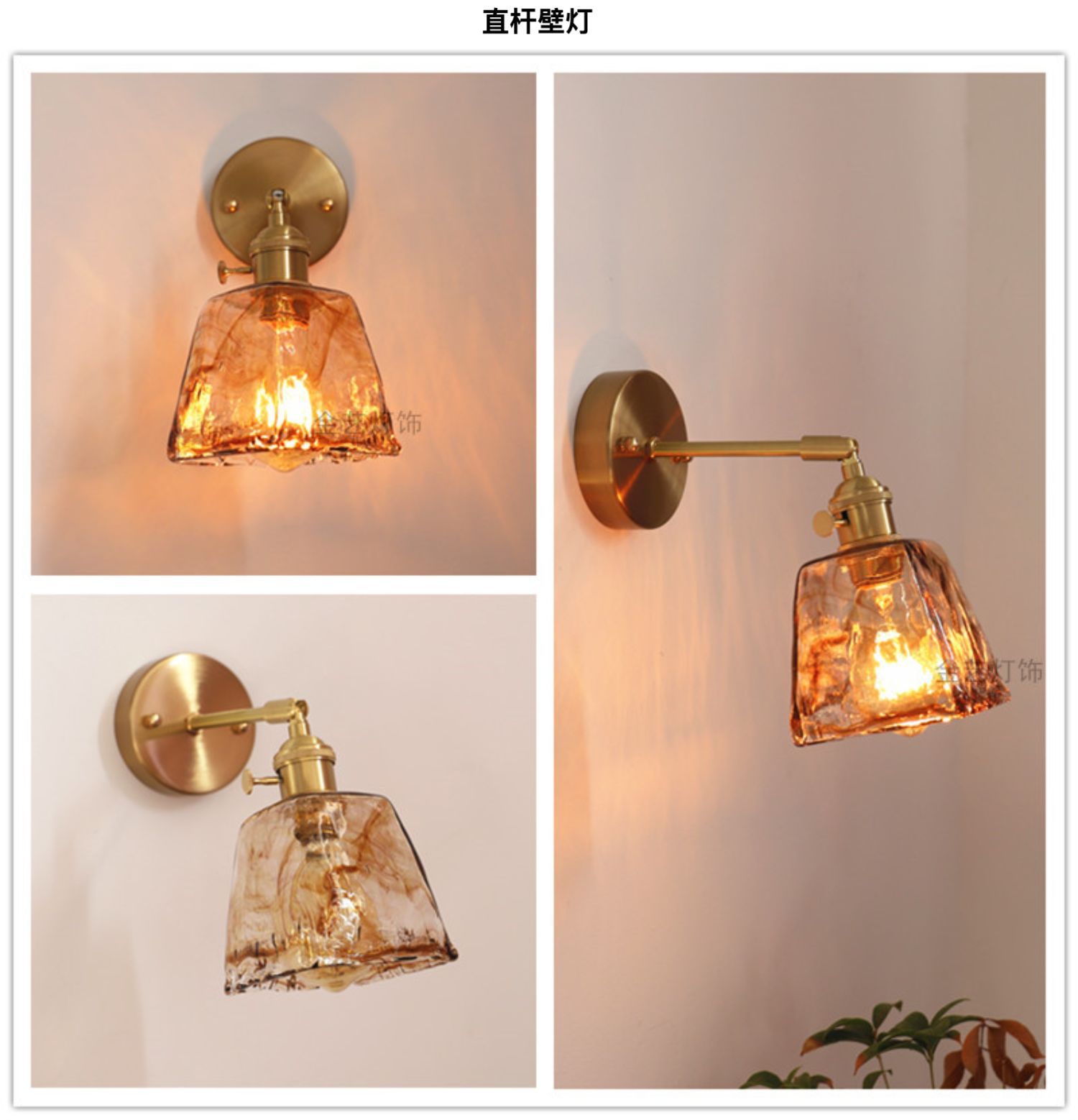 빈티지 유리 작은 벽 램프 일본식 황동 욕실 거울 전면 램프 간단한 홈스테이 거실 침실 램프스토어 가기