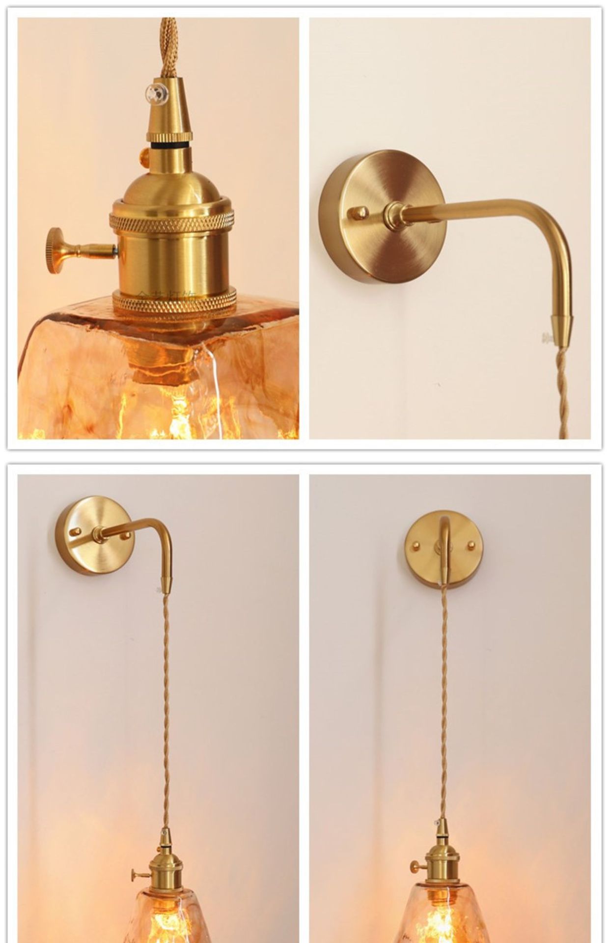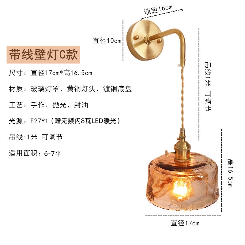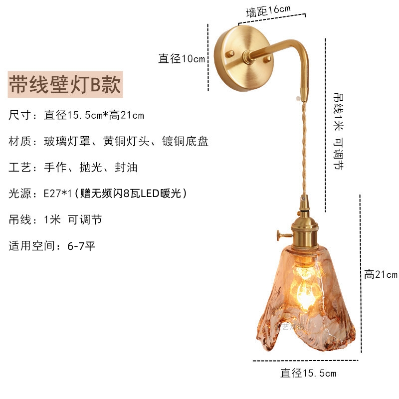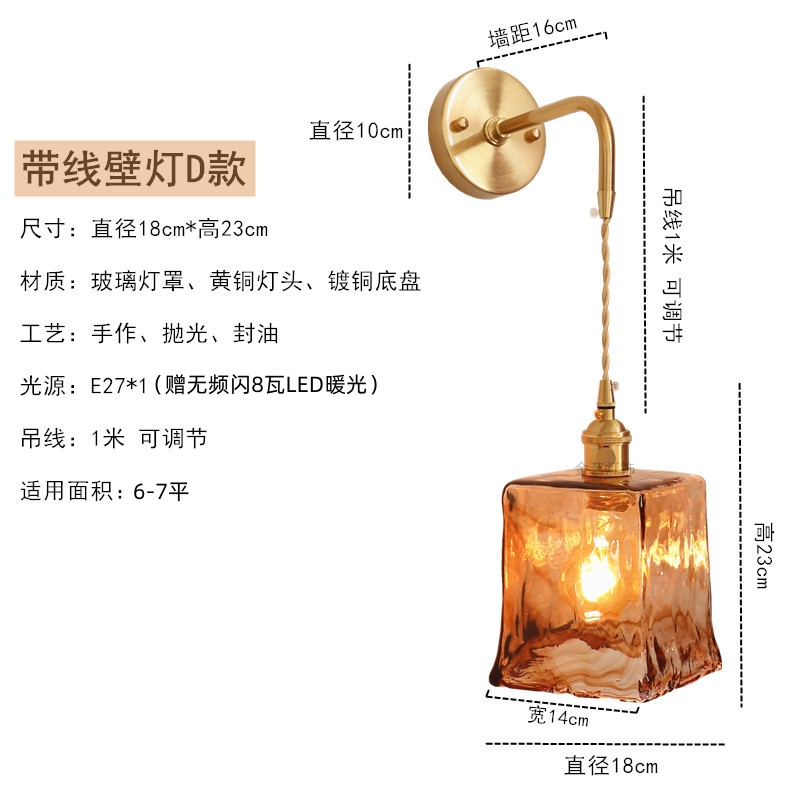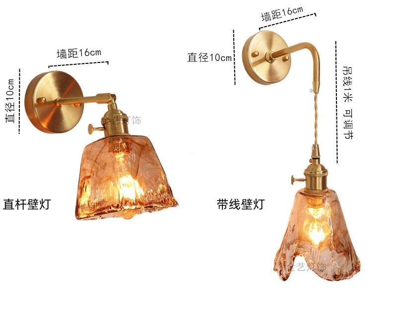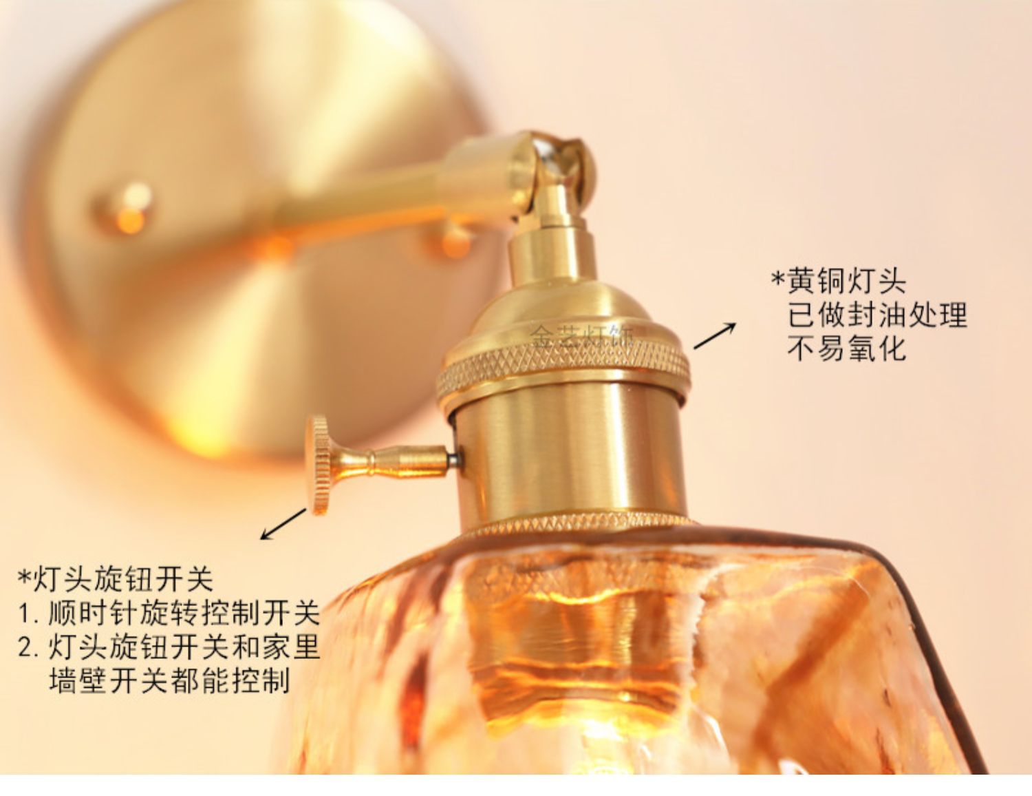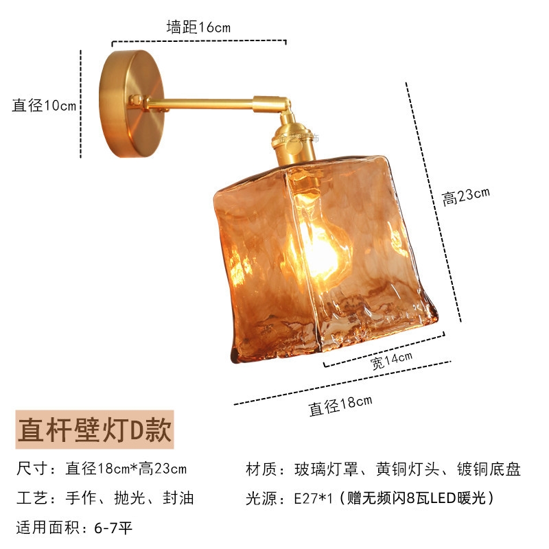 빈티지 유리 작은 벽 램프 일본식 황동 욕실 거울 전면 램프 간단한 홈스테이 거실 침실 램프스토어 가기