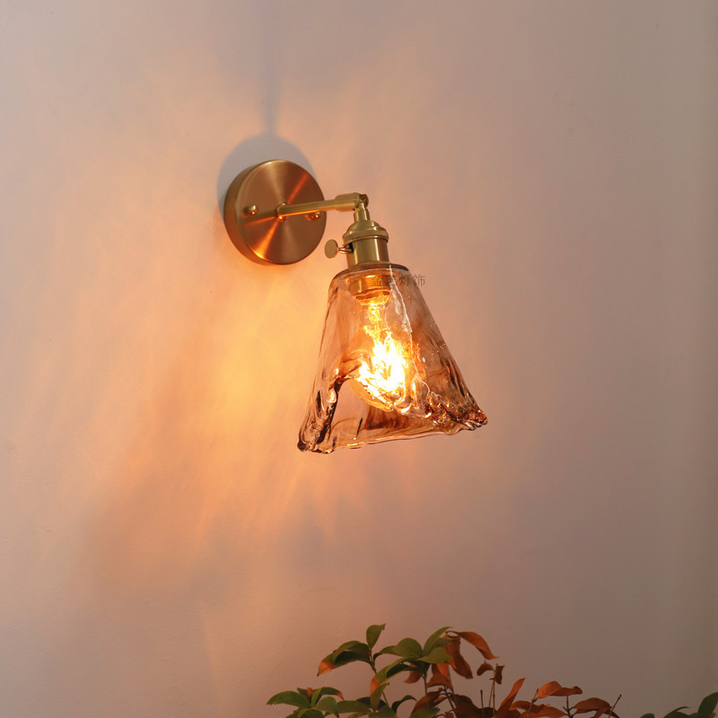 빈티지 유리 작은 벽 램프 일본식 황동 욕실 거울 전면 램프 간단한 홈스테이 거실 침실 램프