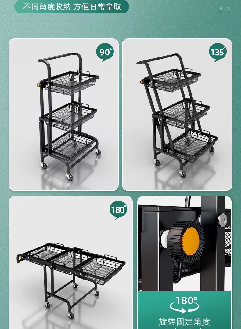 이동식 스토리지 랙 접이식 스토리지 랙 바닥 3 층 회전 트롤리 주방 병렬 랙 트롤리 스토리지