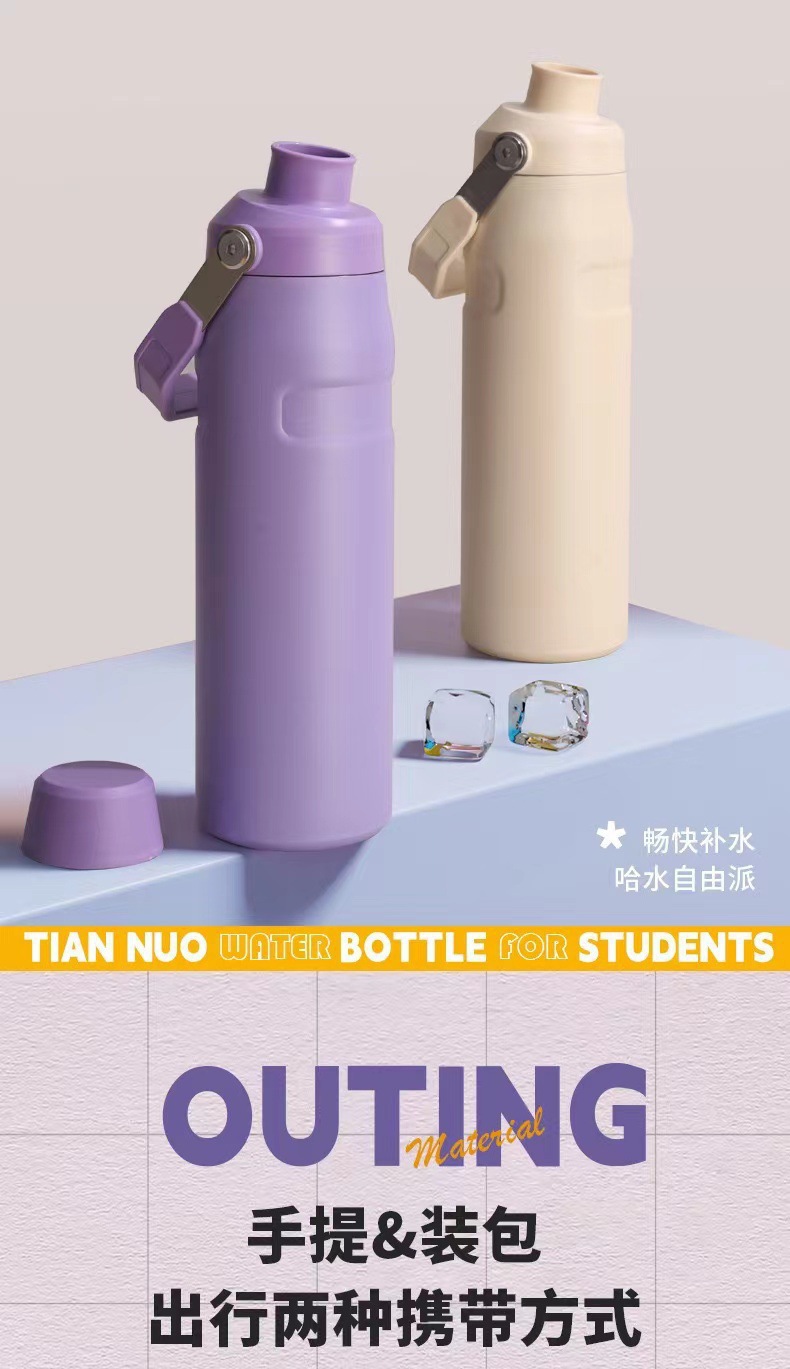 국경 304 스테인레스 스틸 비뚤어진 입 손잡이 스포츠 주전자 야외 휴대용 자동차 등산 여행 주전자 열 냄비
