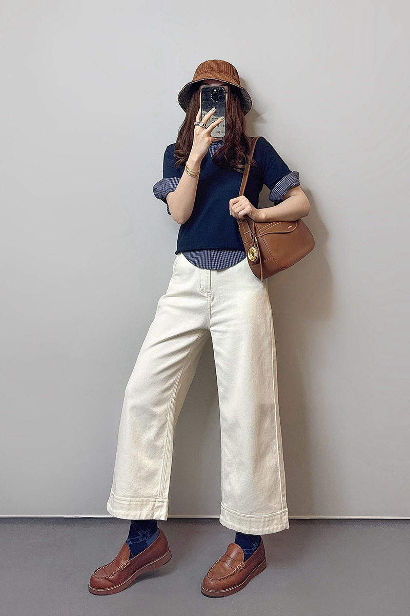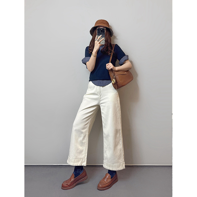 아이보리 높은 허리 넓은 다리 청바지 여성의 봄 가을 가을 겨울 짧은 좁은 느슨한 딥 스트레이트 파이프 바지스토어 가기