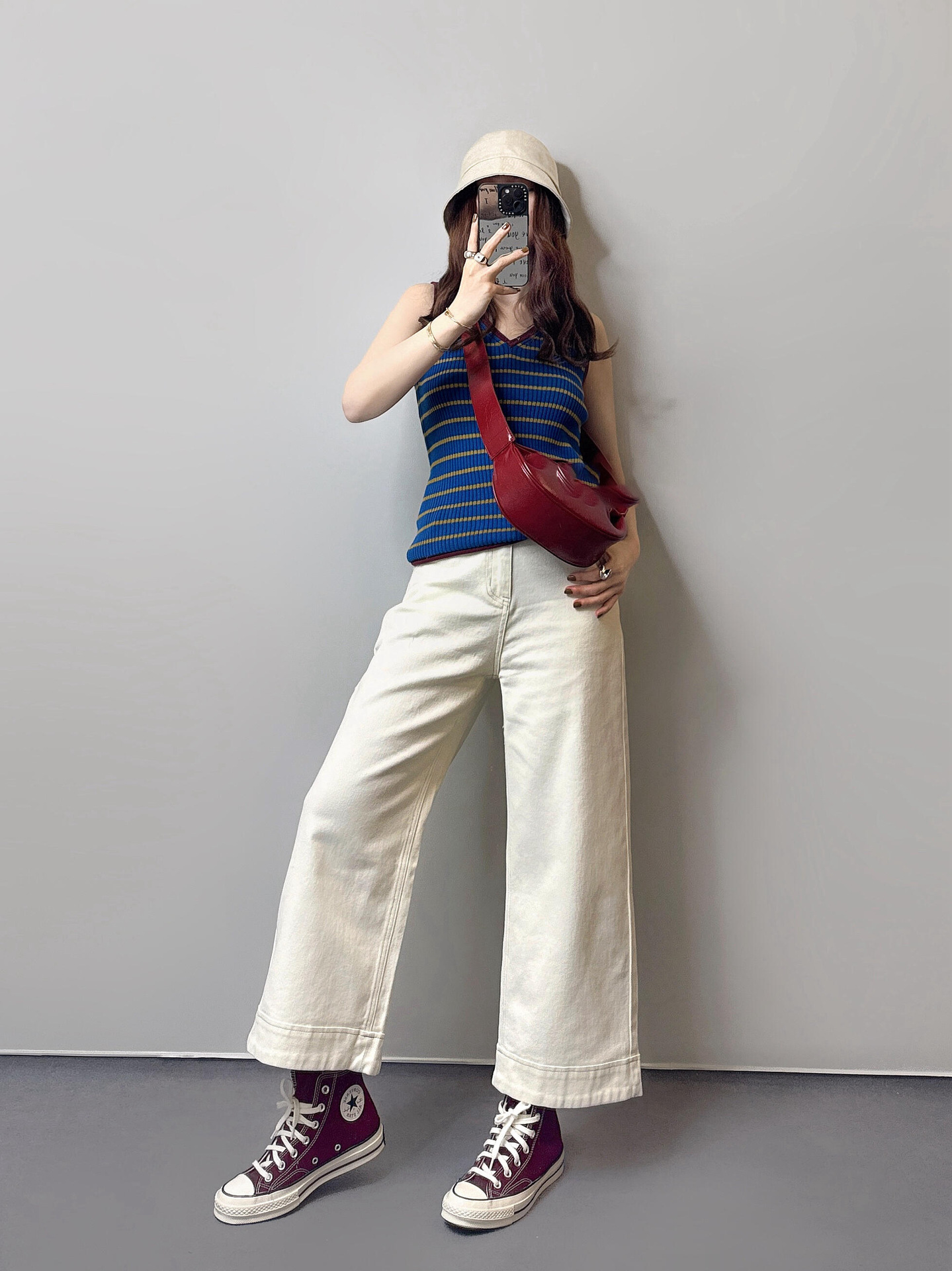 아이보리 높은 허리 넓은 다리 청바지 여성의 봄 가을 가을 겨울 짧은 좁은 느슨한 딥 스트레이트 파이프 바지