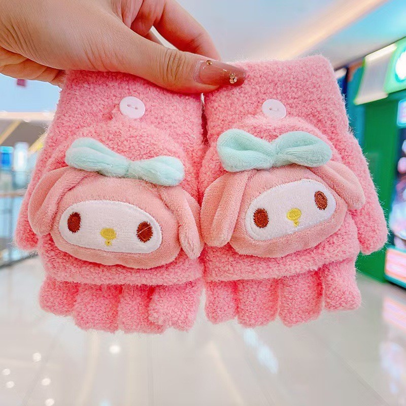 어린이를위한 맞춤형 핑거리스 산호 양털 만화 장갑 도매 플러시 플랩 어린이 장갑 여성 귀여운 유니버설