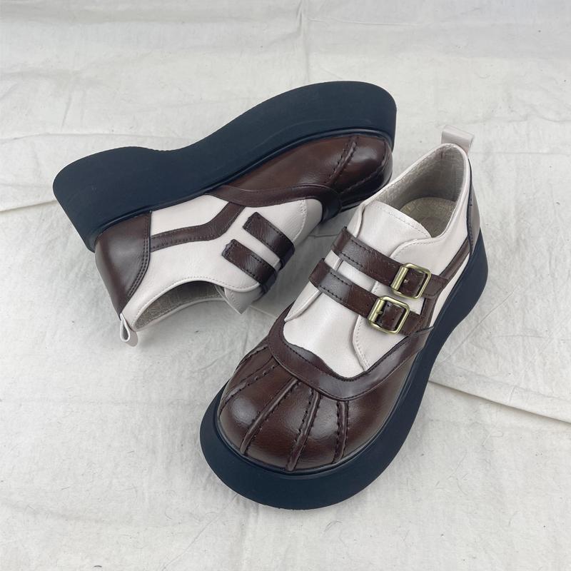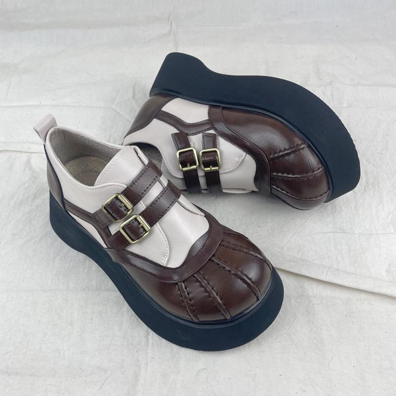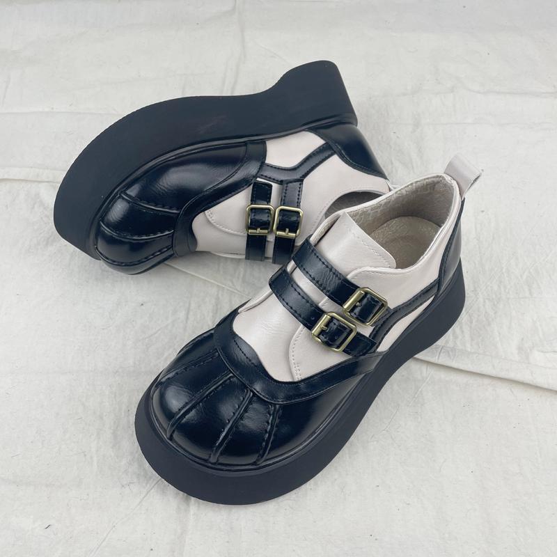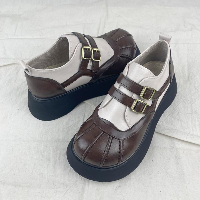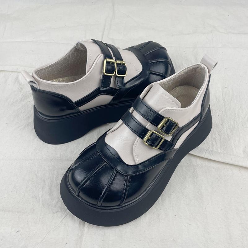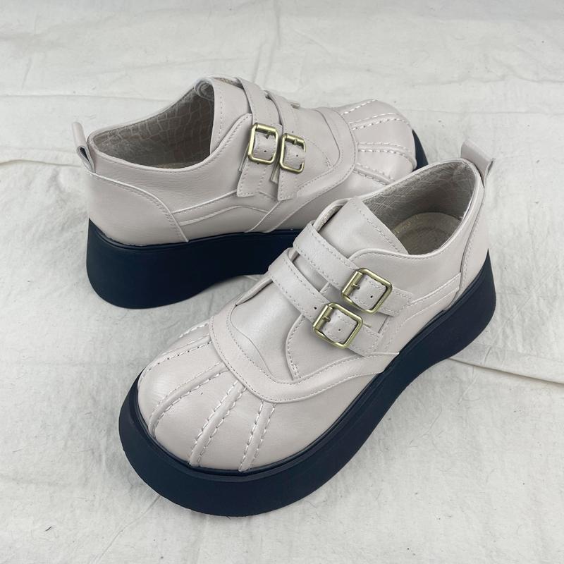 여성을위한 두꺼운 밑창 메리 제인 신발 가을 새로운 일본식 작은 가죽 신발 벨크로 복고풍 영국 대학 스타일 큰 발가락 신발스토어 가기