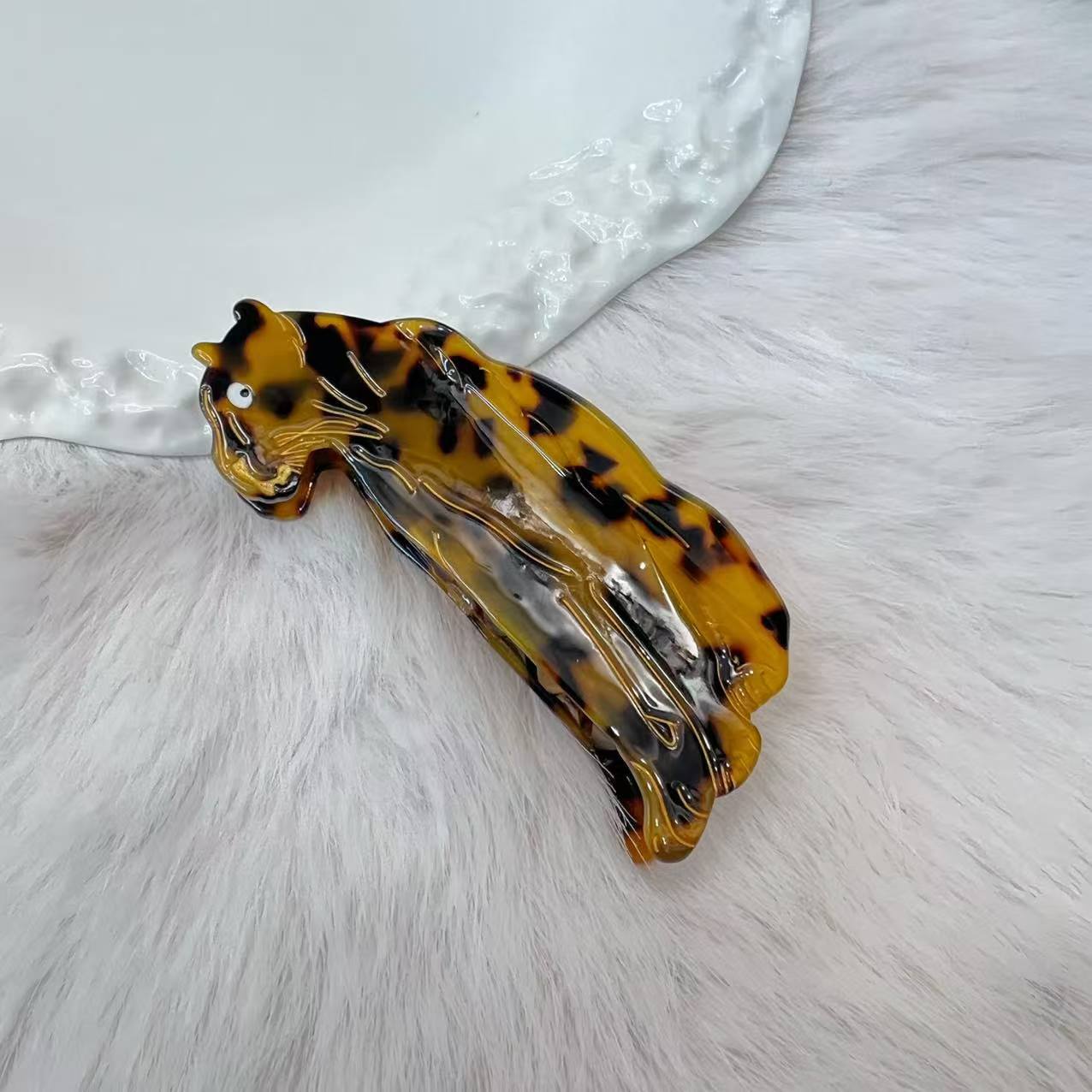 새로운 동물 표범 틈새 개인화 된 표범 다색 상어 클립 그랩 클립 도매 하프 넥타이 풀 넥타이 헤어 잡아 여성
