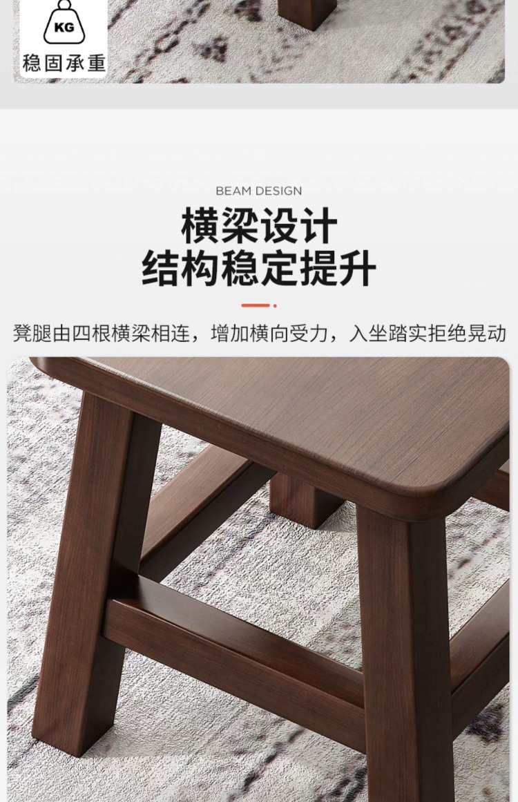 原木色实木方凳子客厅木头凳子家用门口换鞋凳久坐不累榫卯板凳