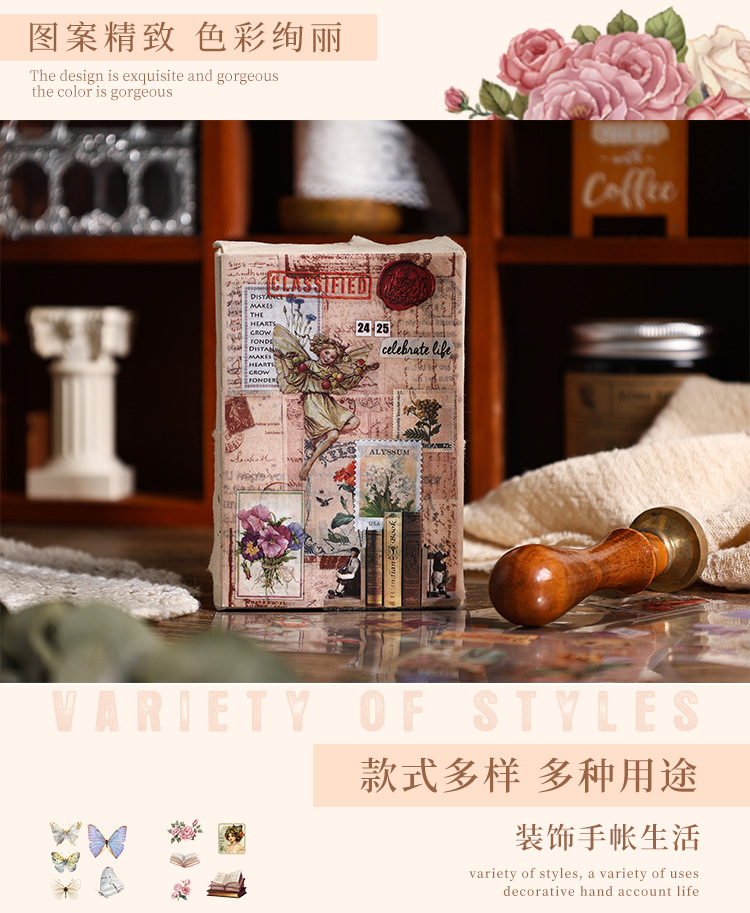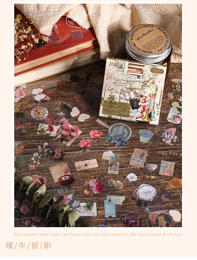 Yuezhen pet100 필름 커팅 스티커 손 계정 스티커 국경 간 복고풍 크리에이티브 스티커 손 계정 소재 스티커스토어 가기