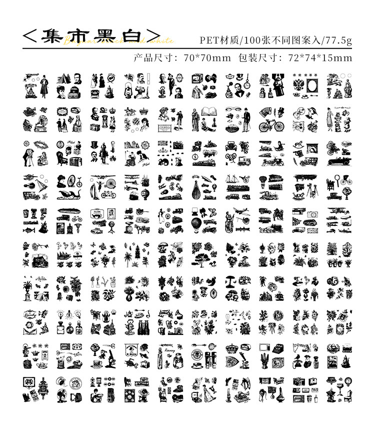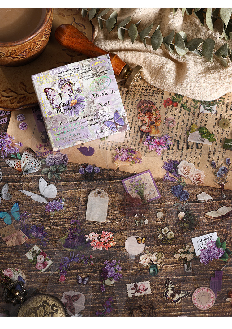 Yuezhen pet100 필름 커팅 스티커 손 계정 스티커 국경 간 복고풍 크리에이티브 스티커 손 계정 소재 스티커