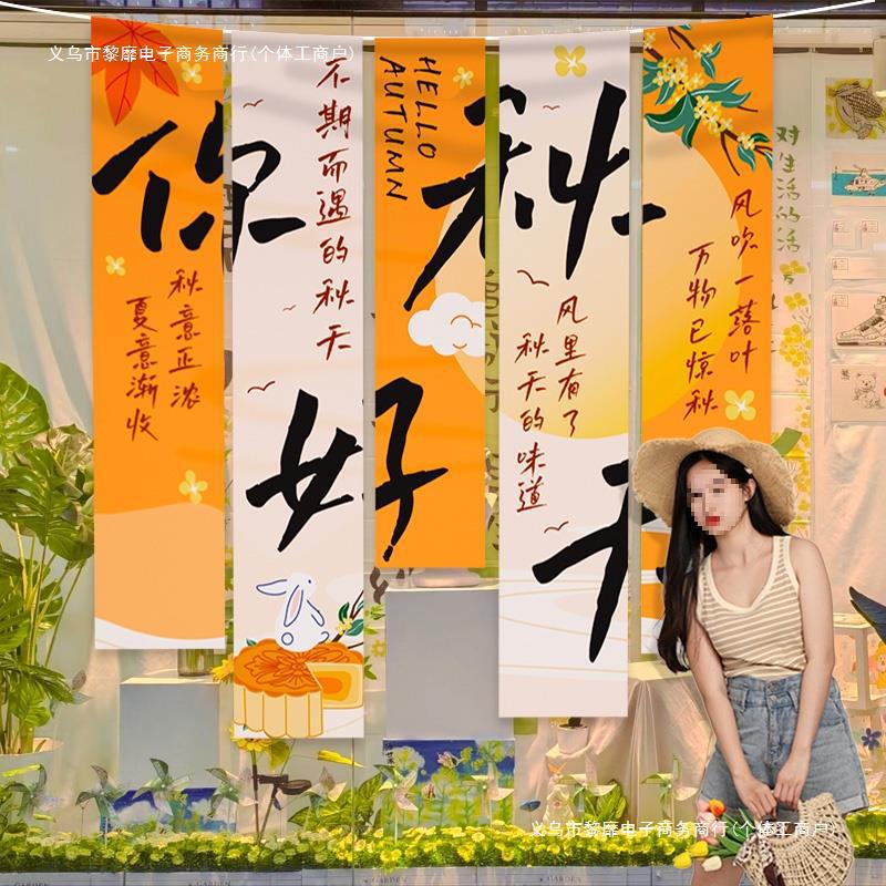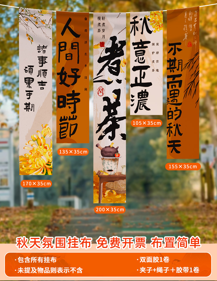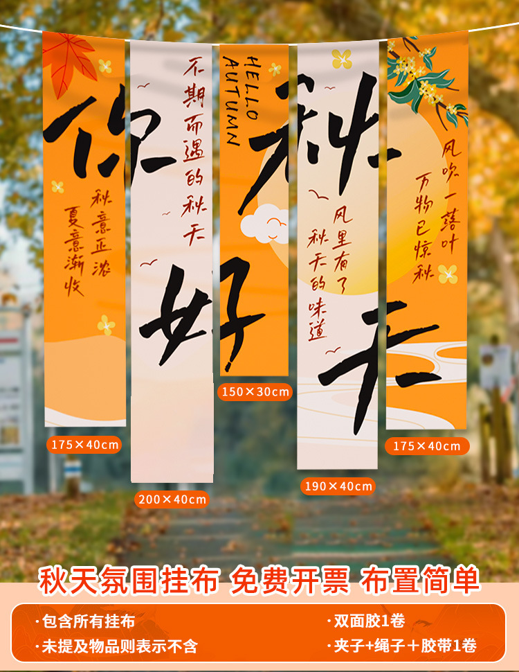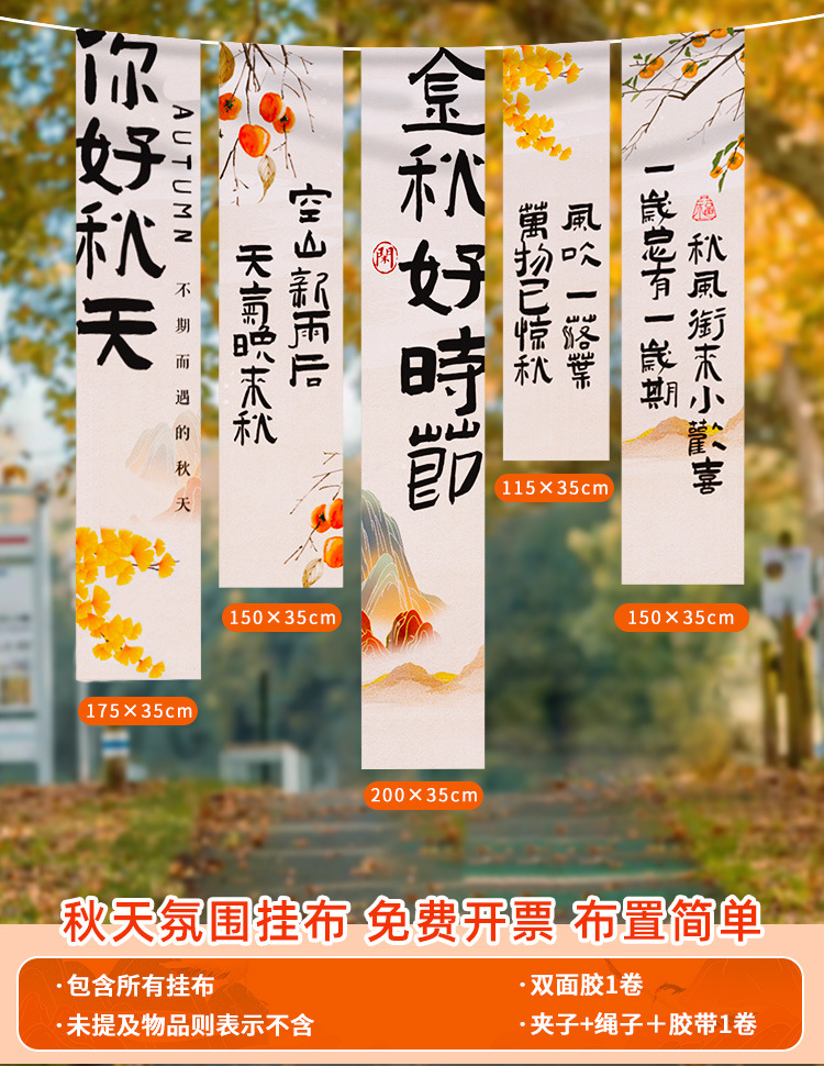 • 【황금빛 가을 좋은 계절⭐가을 수확 분위기] 가을 테마 행잉 천 E❤5팩