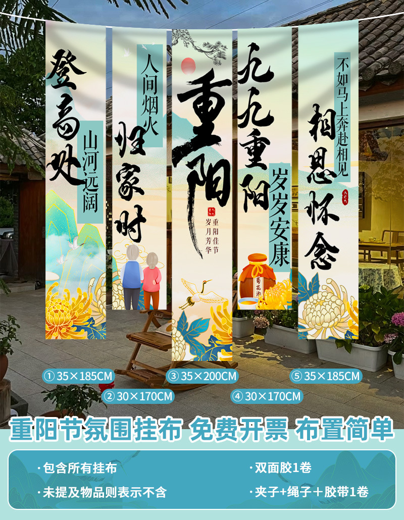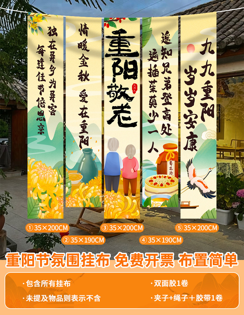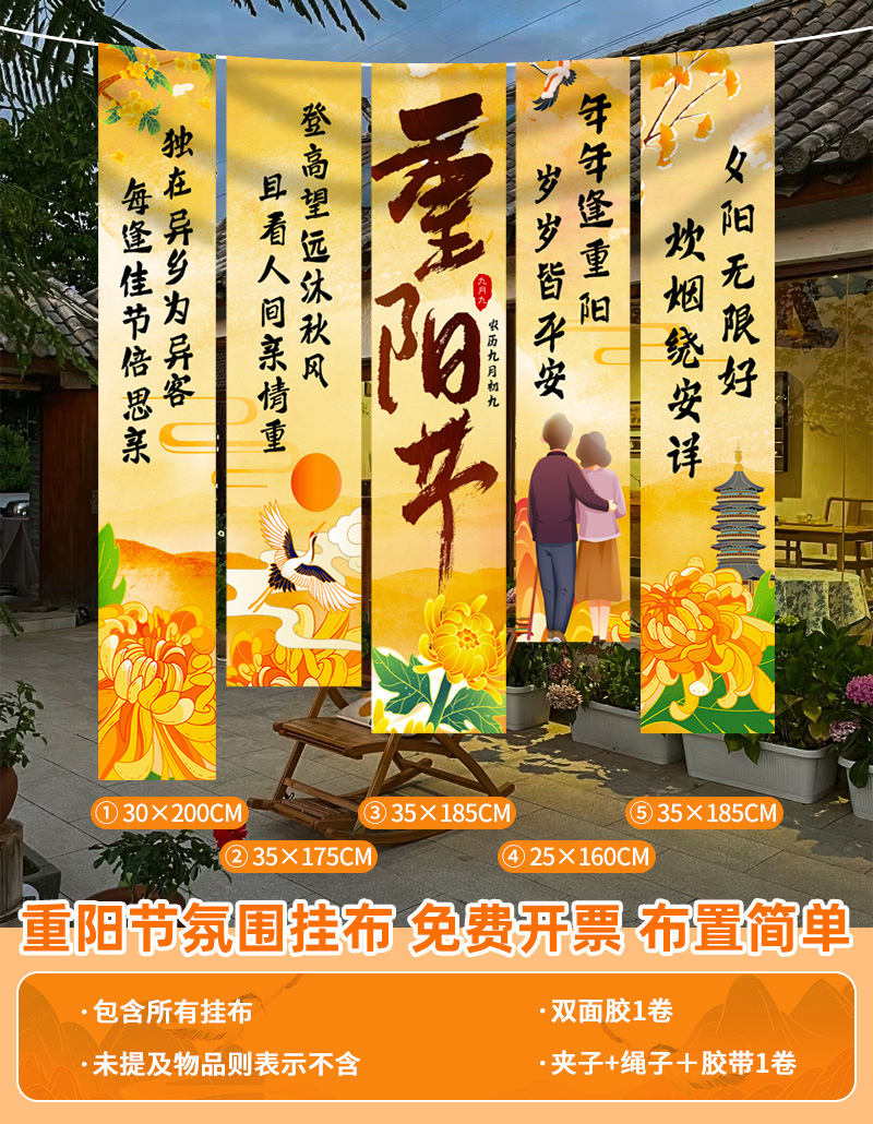 • 【중양 축제 행잉 천 ⭐ 2m 길이로 효과가 좋음] 중양절 행잉천B ⭐ 무료 클립 + 로프 + 테이프 + 양면 테이프