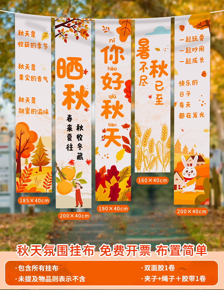 • 【가을에 야생을 펼치다⭐유치원 가을 나들이 및 일광욕 활동] 가을 테마 행잉 천 F❤5팩