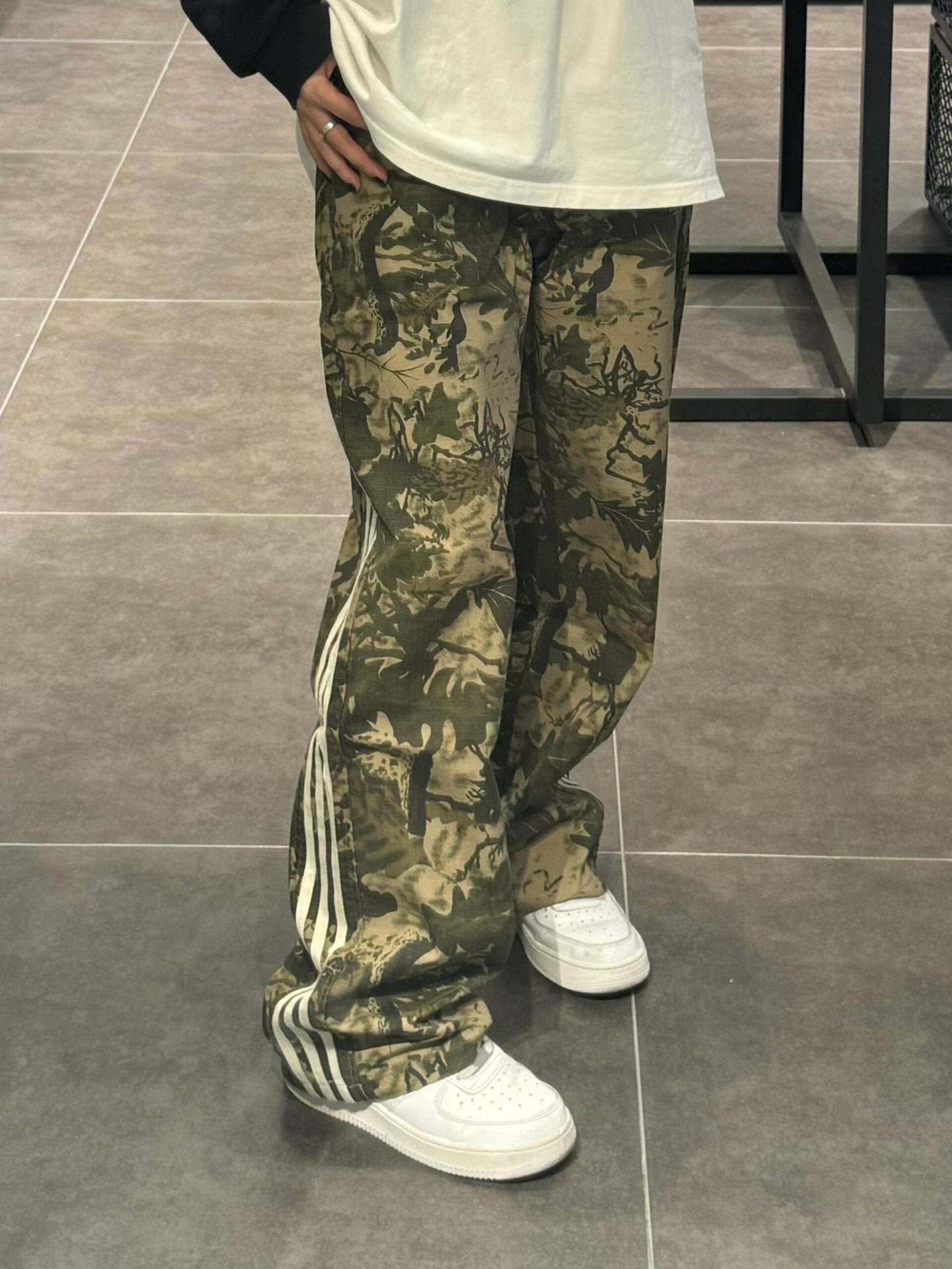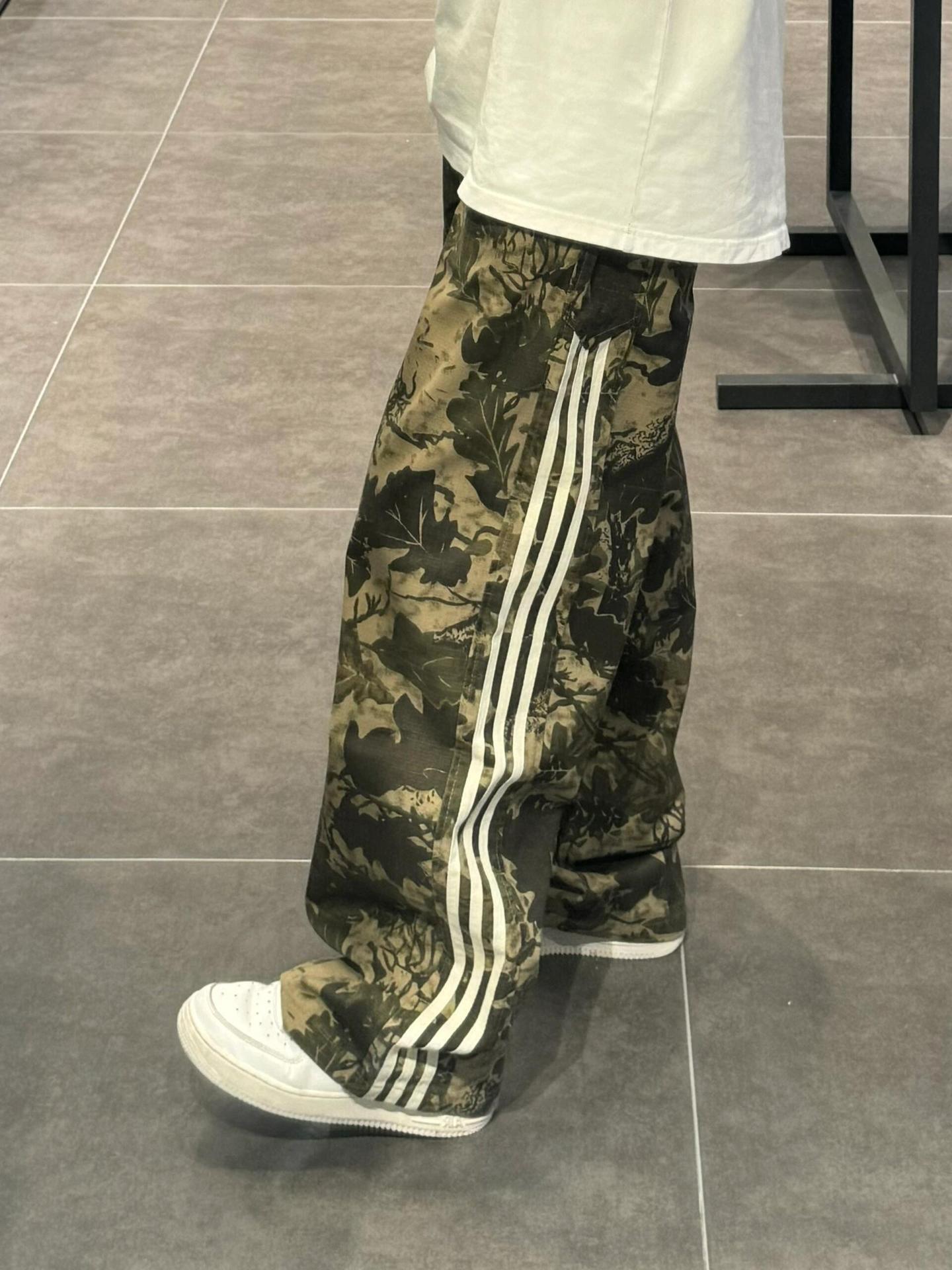 미국식 레트로 3 바 줄무늬 위장 캐주얼 바지 남자 하이 스트리트 낙하산 병, 바지 hiphop 와이드 레그 스트레이트 바지 적발스토어 가기