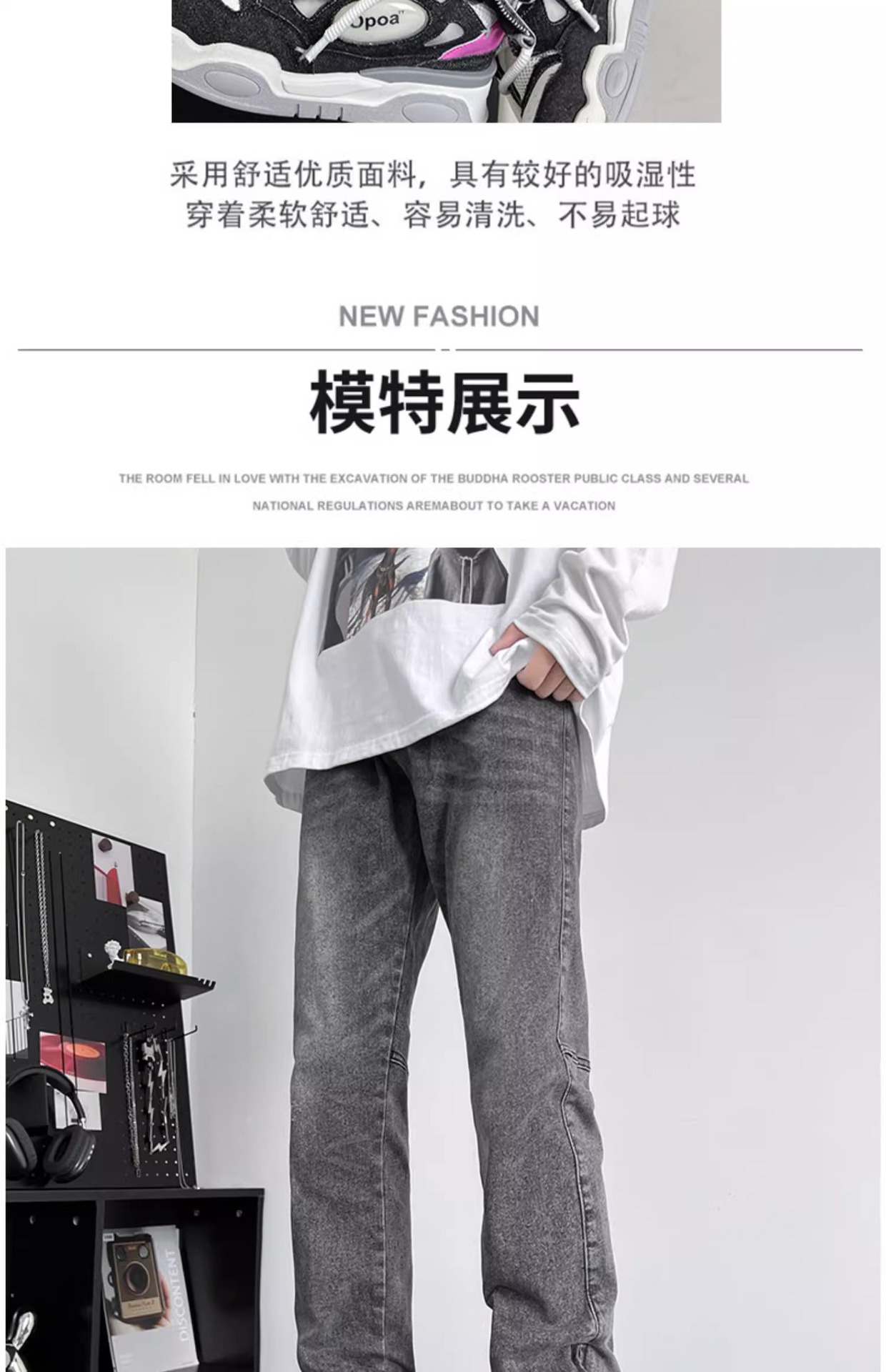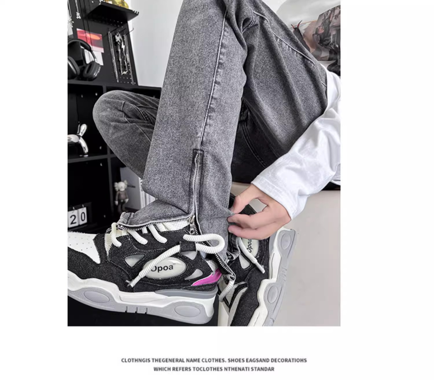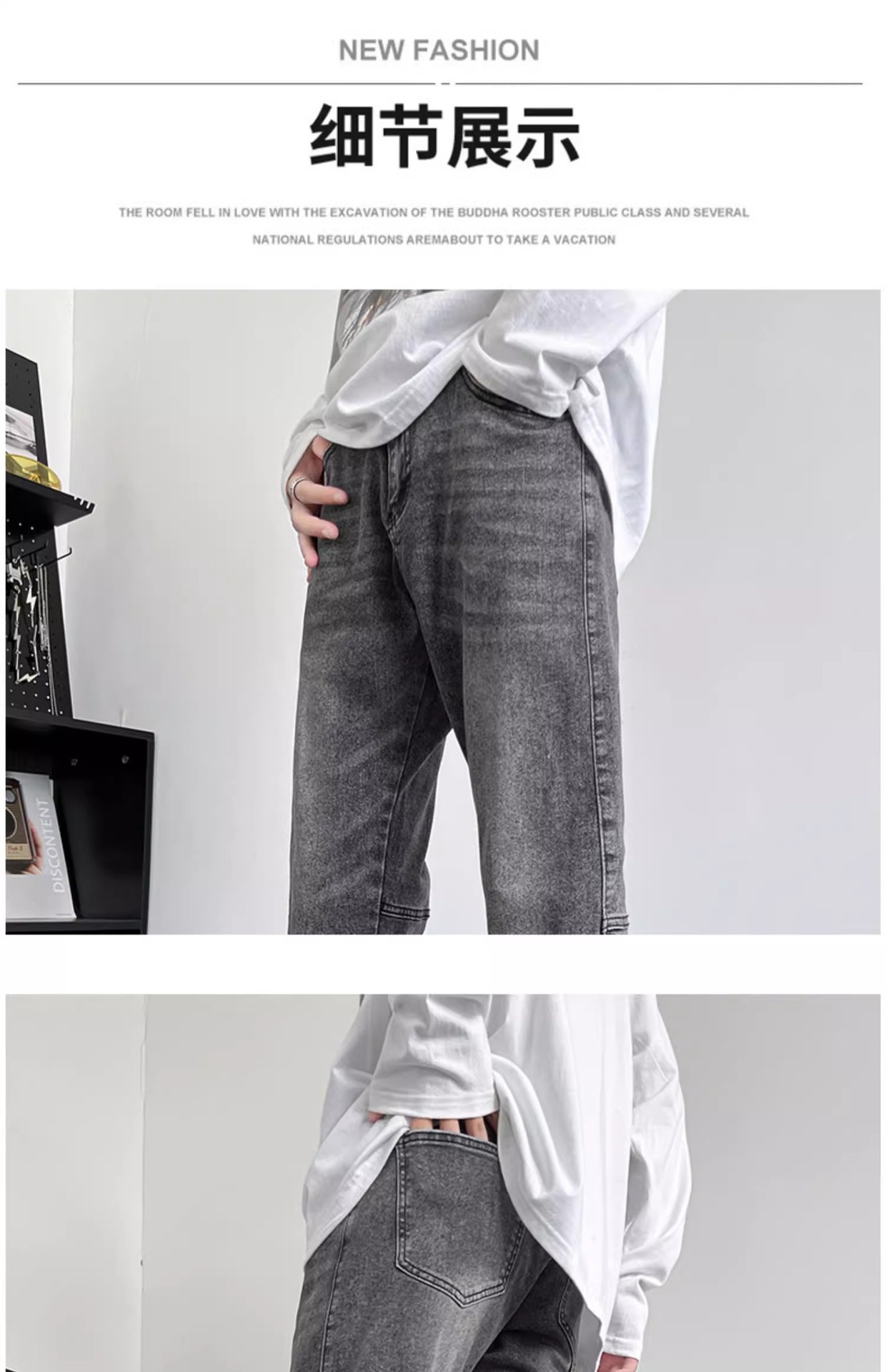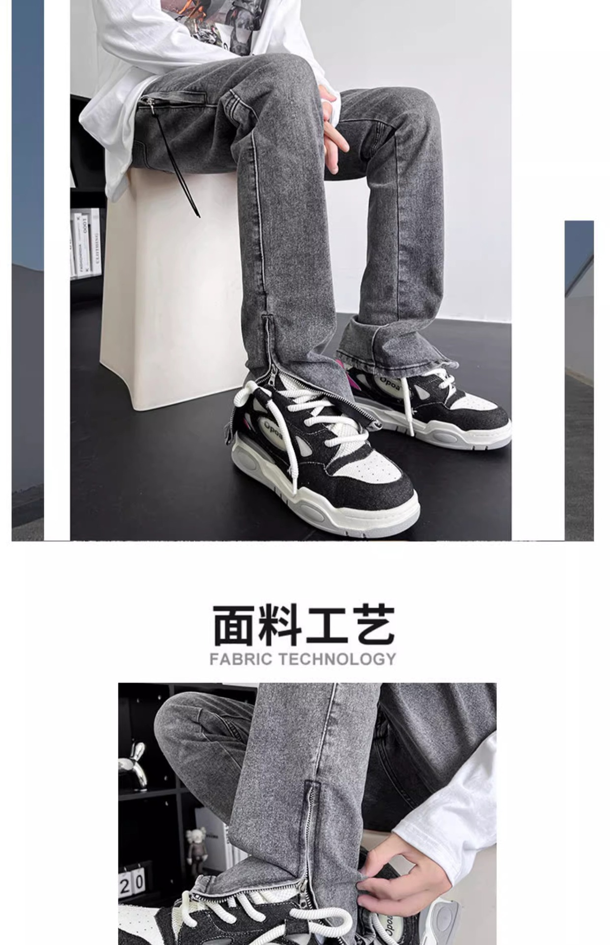 사이드 지퍼 스플릿 청바지 봄과 가을 아메리칸 스타일 하이 스트리트 바이브 프라이드 스트리트 팬츠 남성용 트렌디 한 브랜드 작업복 스트레이트 바지스토어 가기