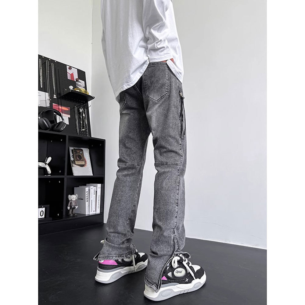 사이드 지퍼 스플릿 청바지 봄과 가을 아메리칸 스타일 하이 스트리트 바이브 프라이드 스트리트 팬츠 남성용 트렌디 한 브랜드 작업복 스트레이트 바지