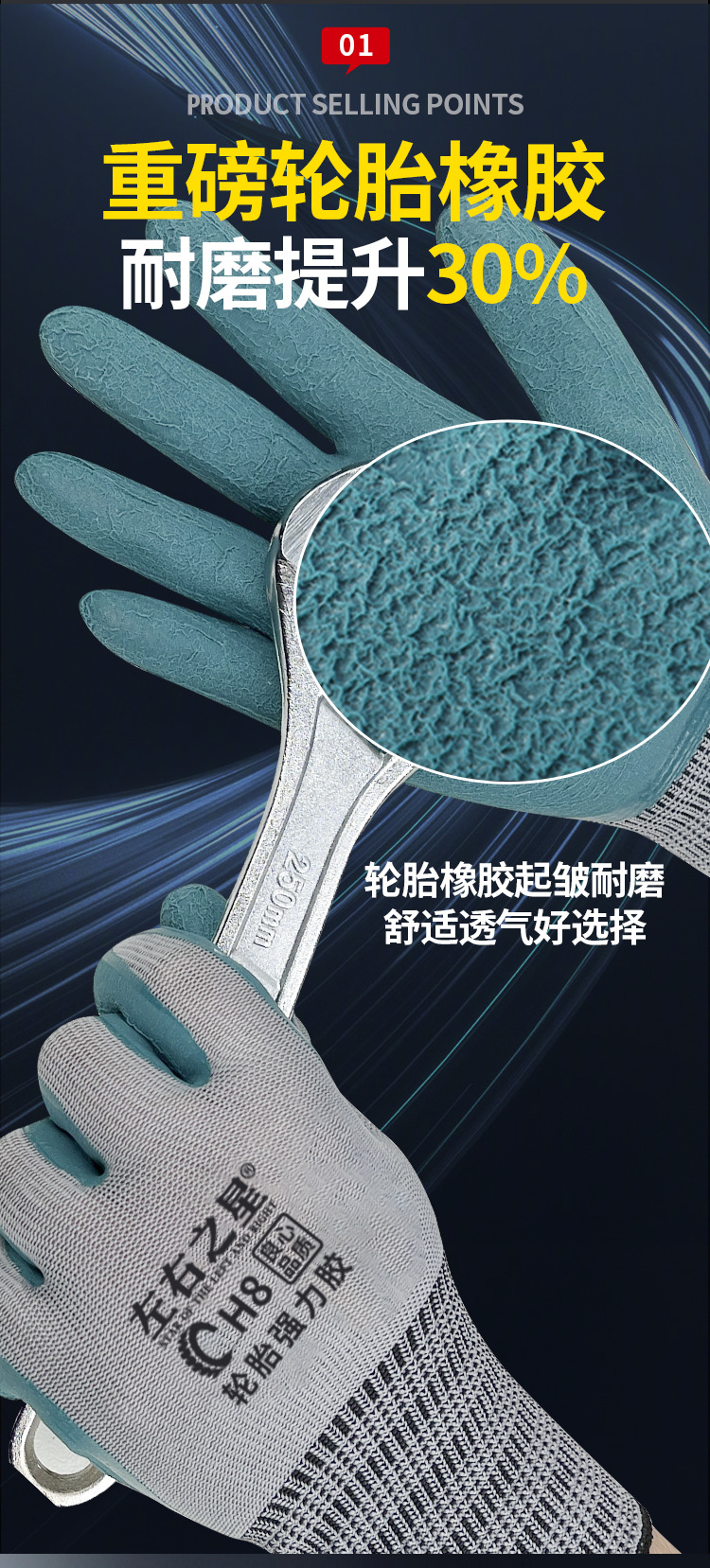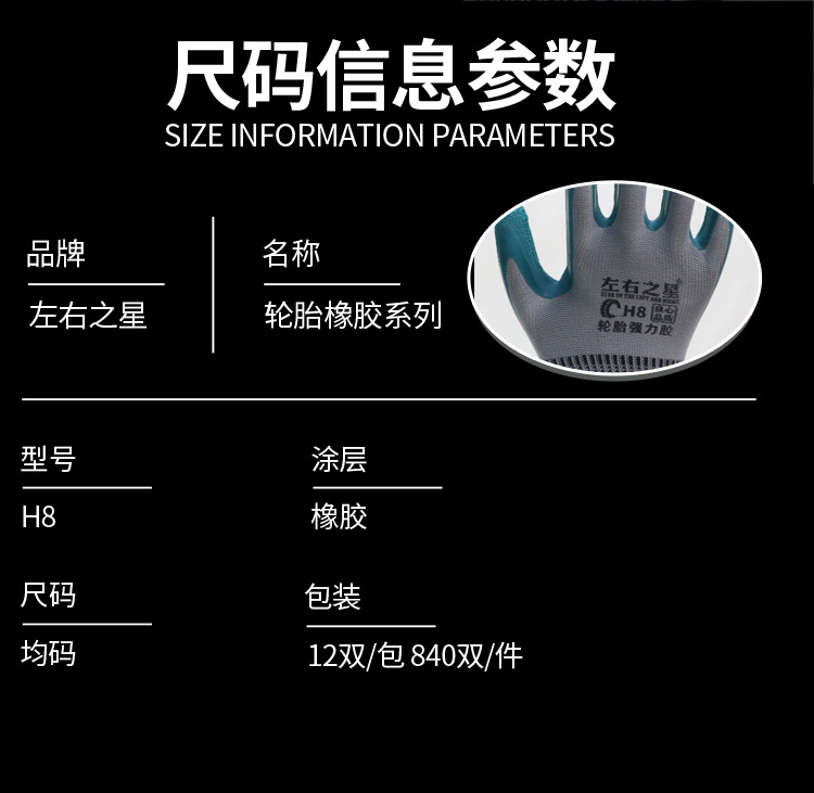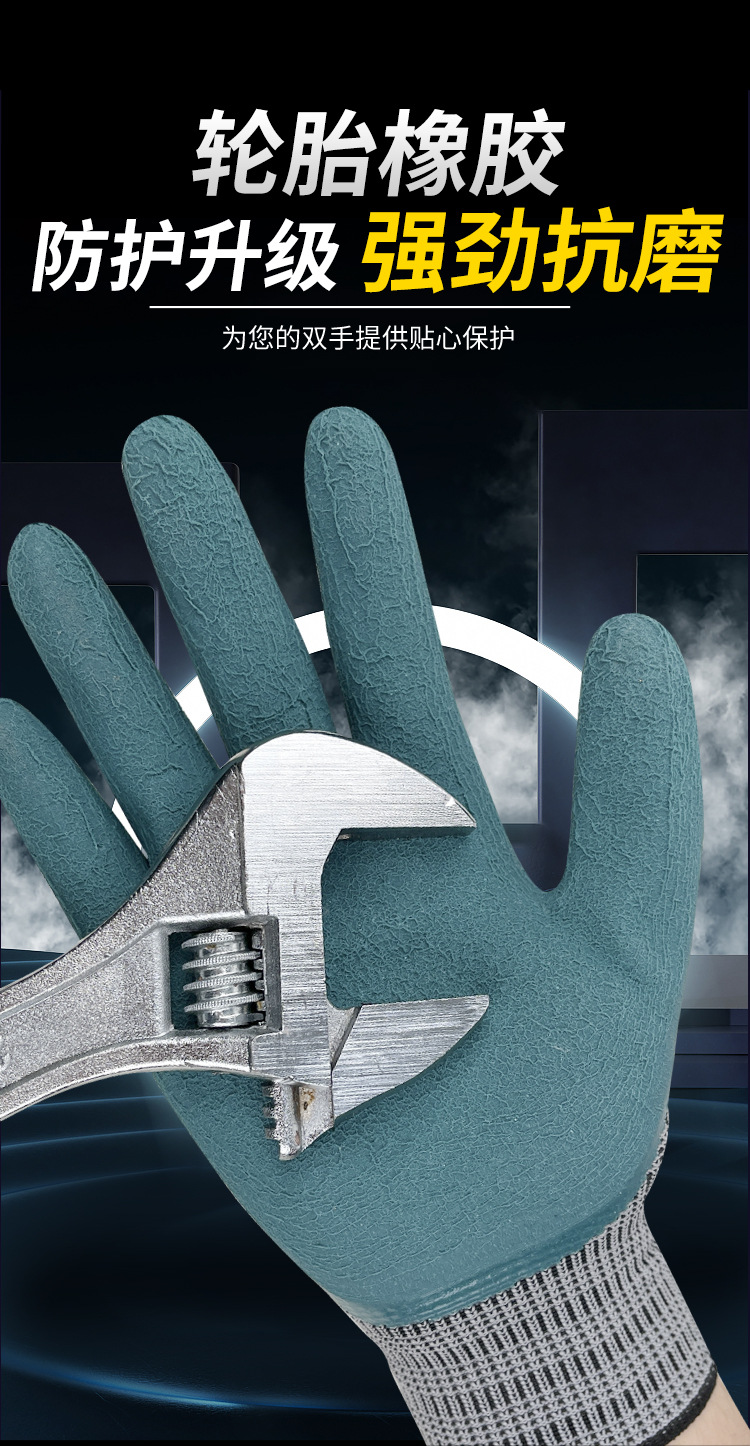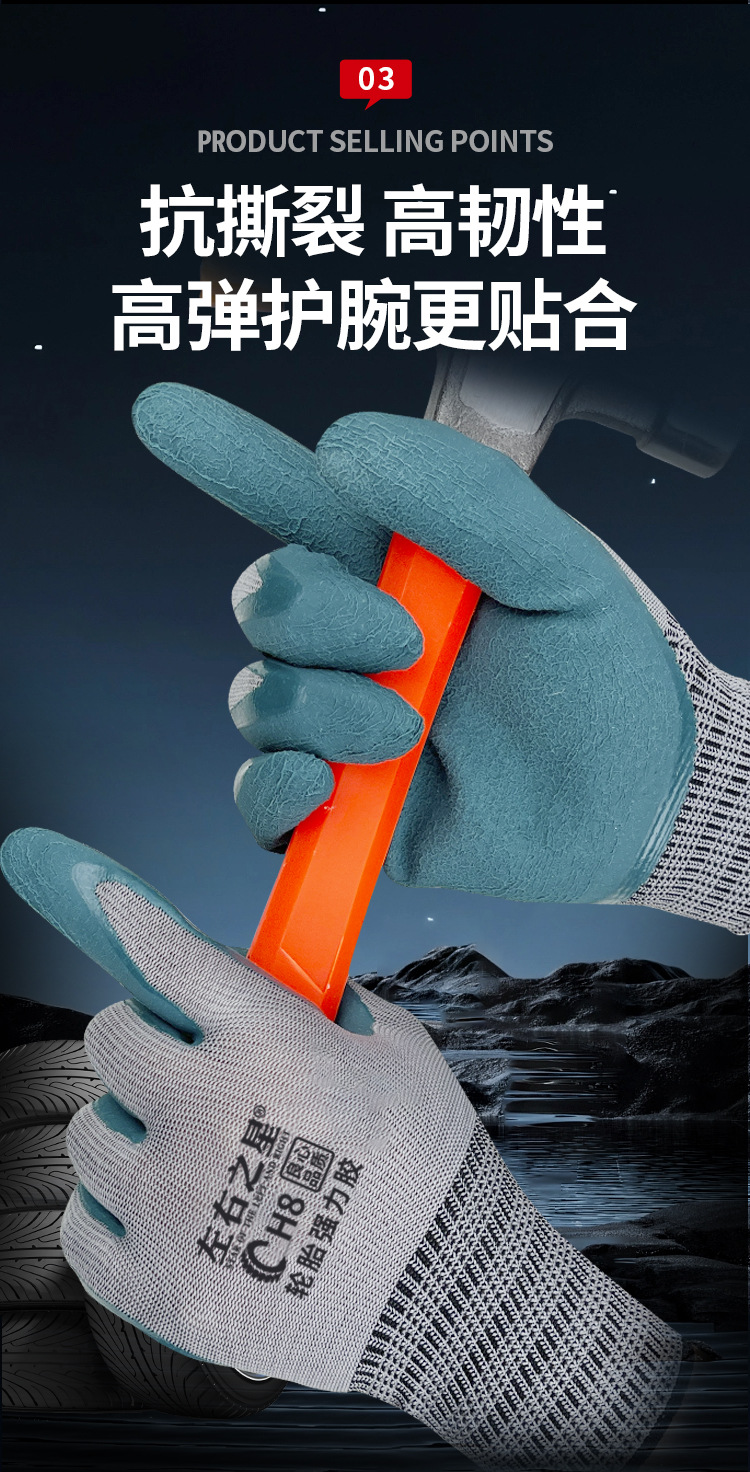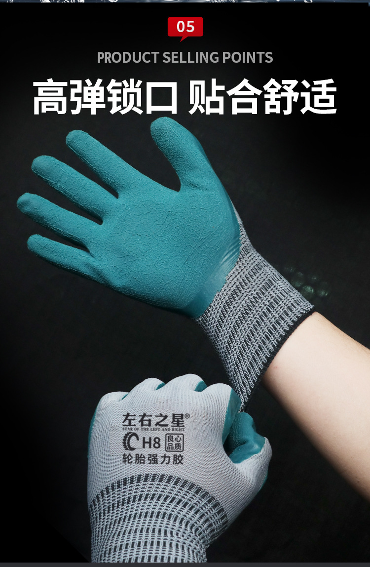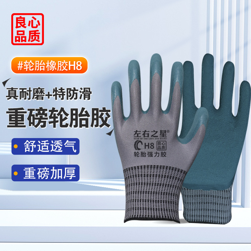왼쪽 및 오른쪽 스타 타이어 고무 노동 보호 장갑 반 매달려 두부 두꺼운 마모 방지 및 미끄럼 방지 사이트 보호 공장 스트레이트 헤어