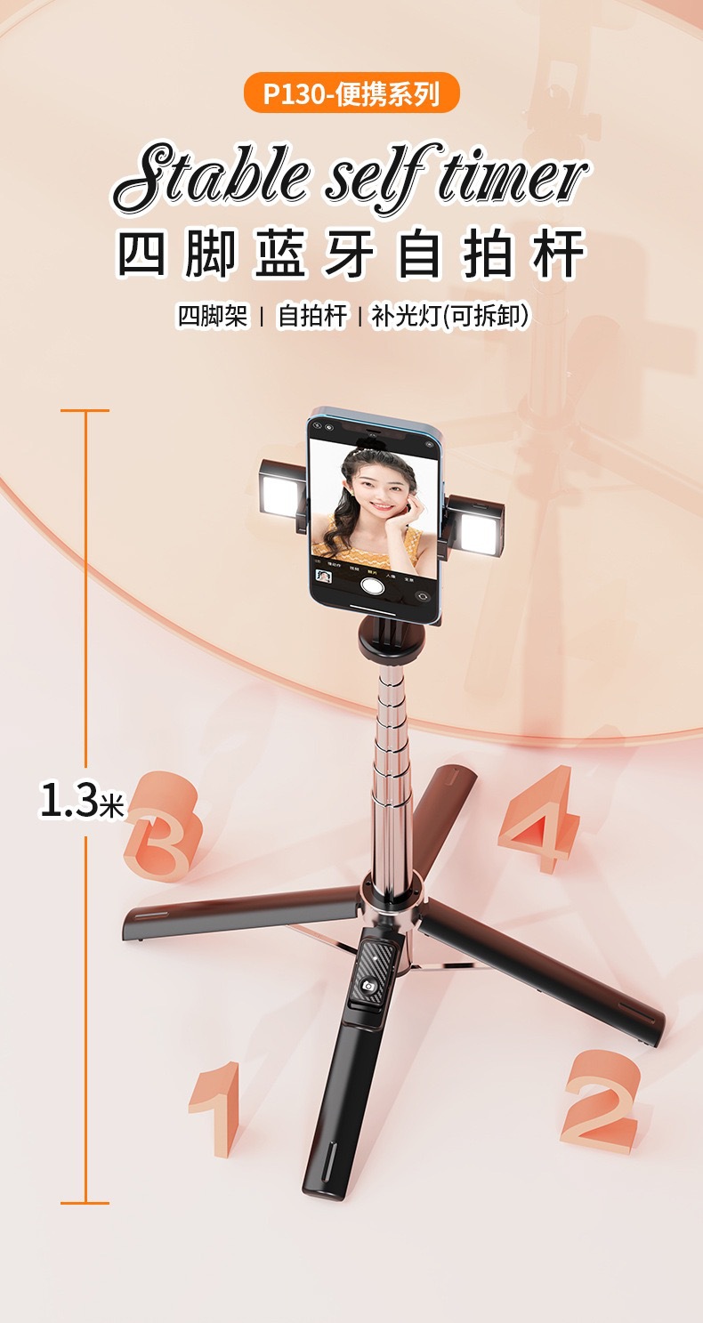 P130 네 다리 브래킷 셀카 스틱 여행 휴대용 충전 블루투스 원격 제어 흔들림 방지 접이식 휴대 전화 셀카 스틱