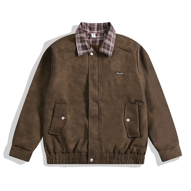아메리칸 스타일 빈티지 칼라 바느질 격자 무늬 재킷 남자의 봄과 가을 새로운 느슨한 hiphop 툴링 올드 재킷 탑스토어 가기