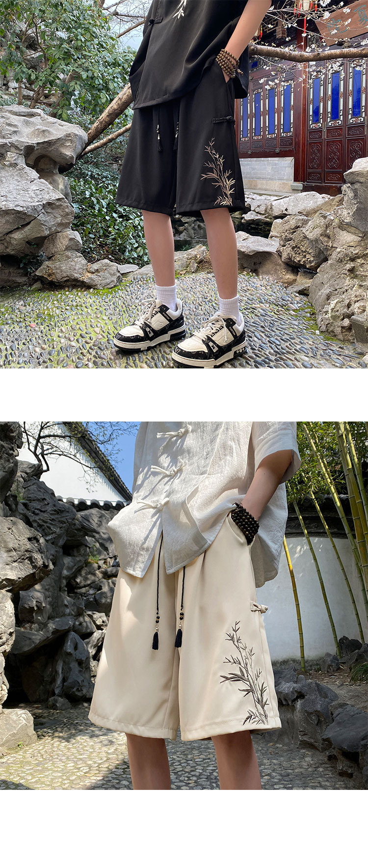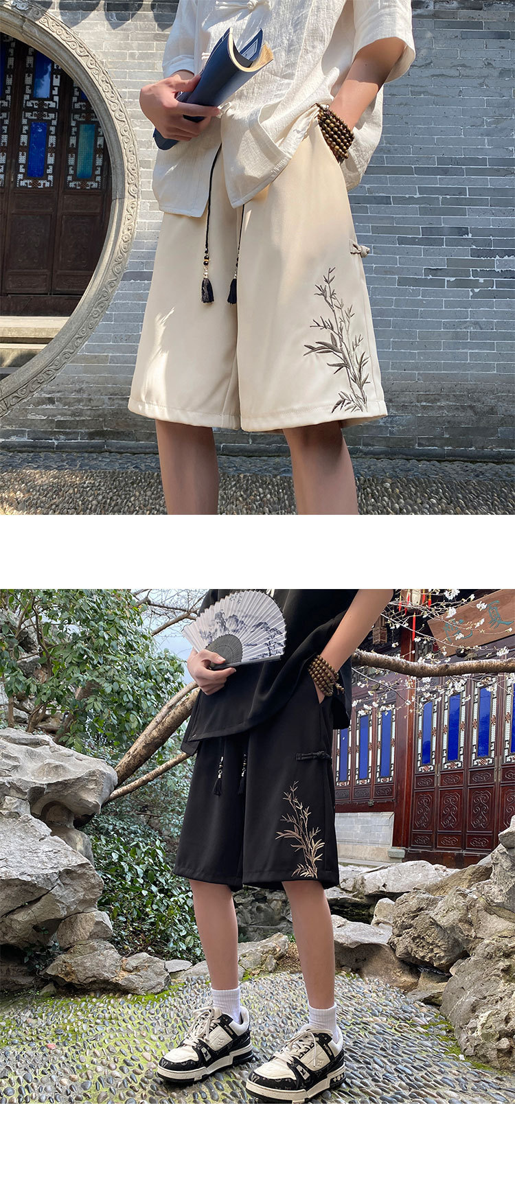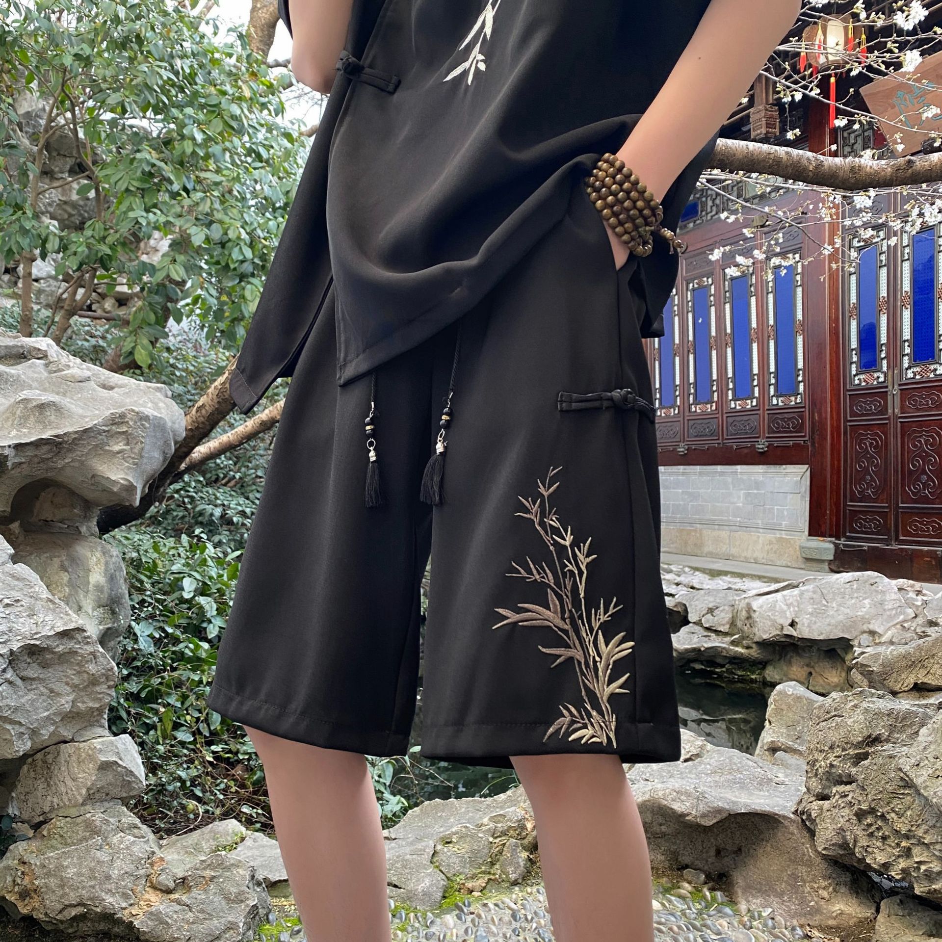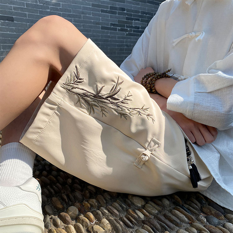 새로운 중국 스타일 국가 스타일 버클 세트 반바지 남성 유행 브랜드 여름 새로운 스타일 5 점 바지 전국 유행 자수 캐주얼 바지스토어 가기