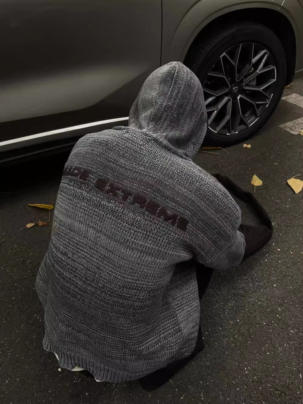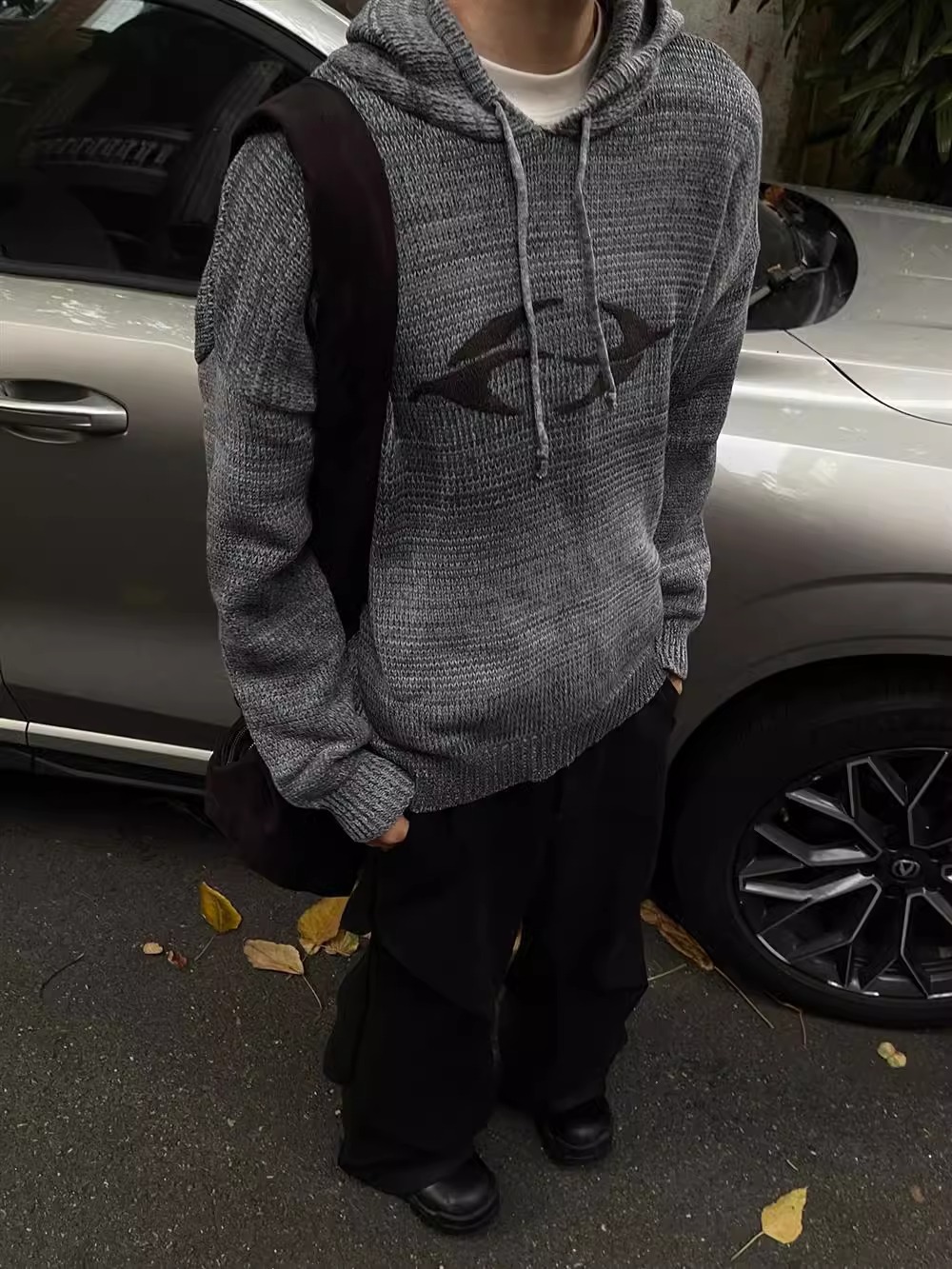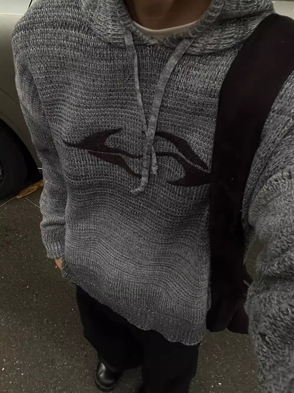 미국 스트라이프 편지 자수 후드 스웨터 니트웨어 남성용 루즈 캐주얼 게으른 스타일 핸섬 재킷 탑