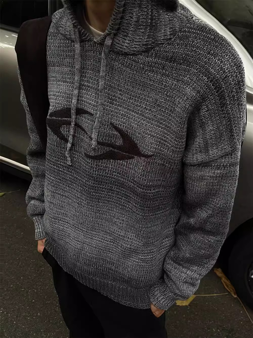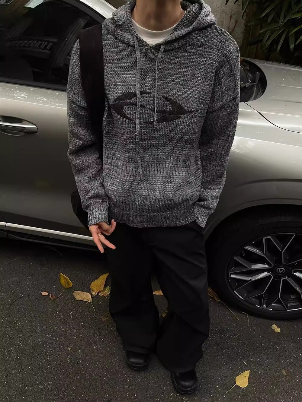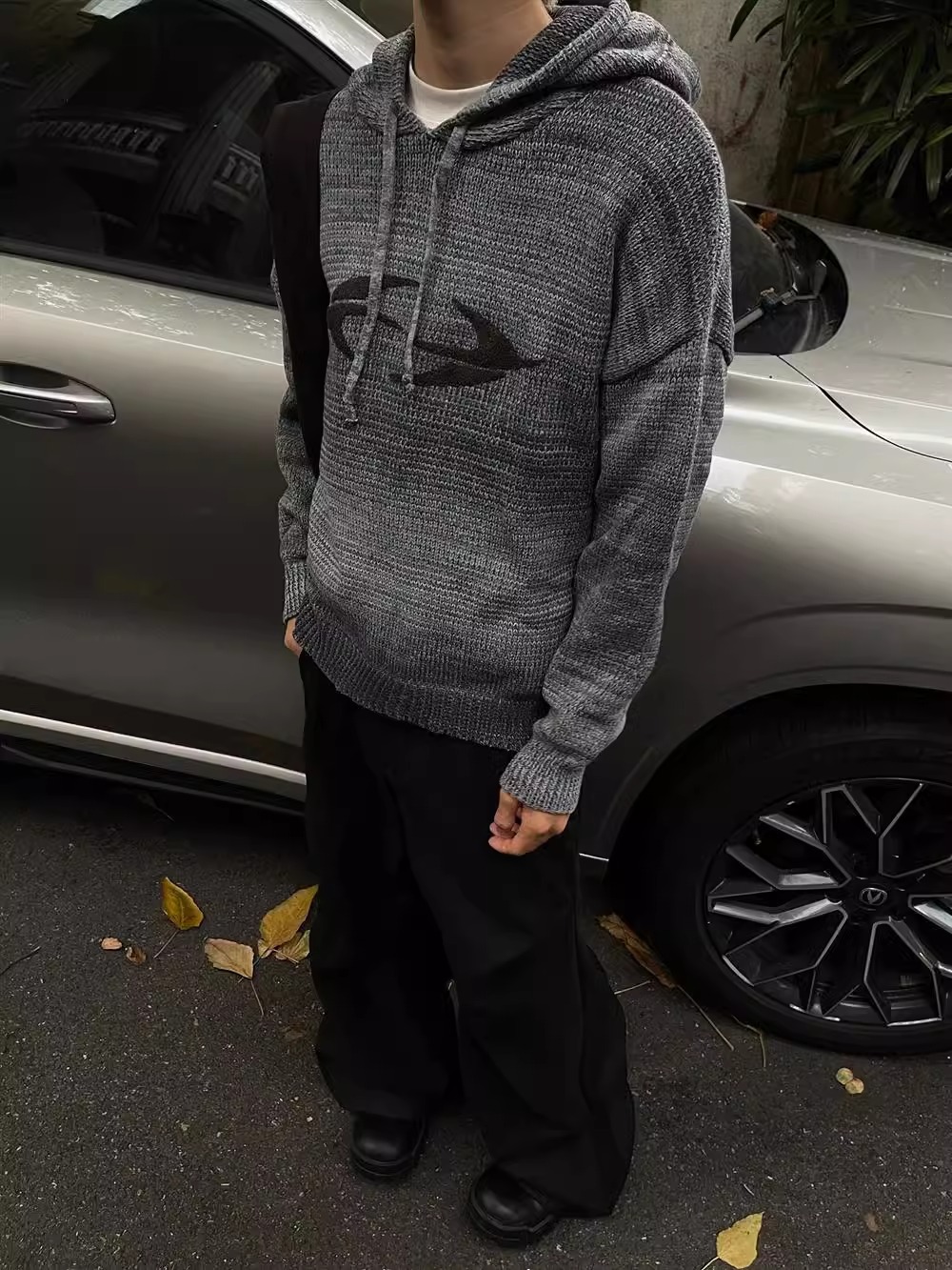 미국 스트라이프 편지 자수 후드 스웨터 니트웨어 남성용 루즈 캐주얼 게으른 스타일 핸섬 재킷 탑