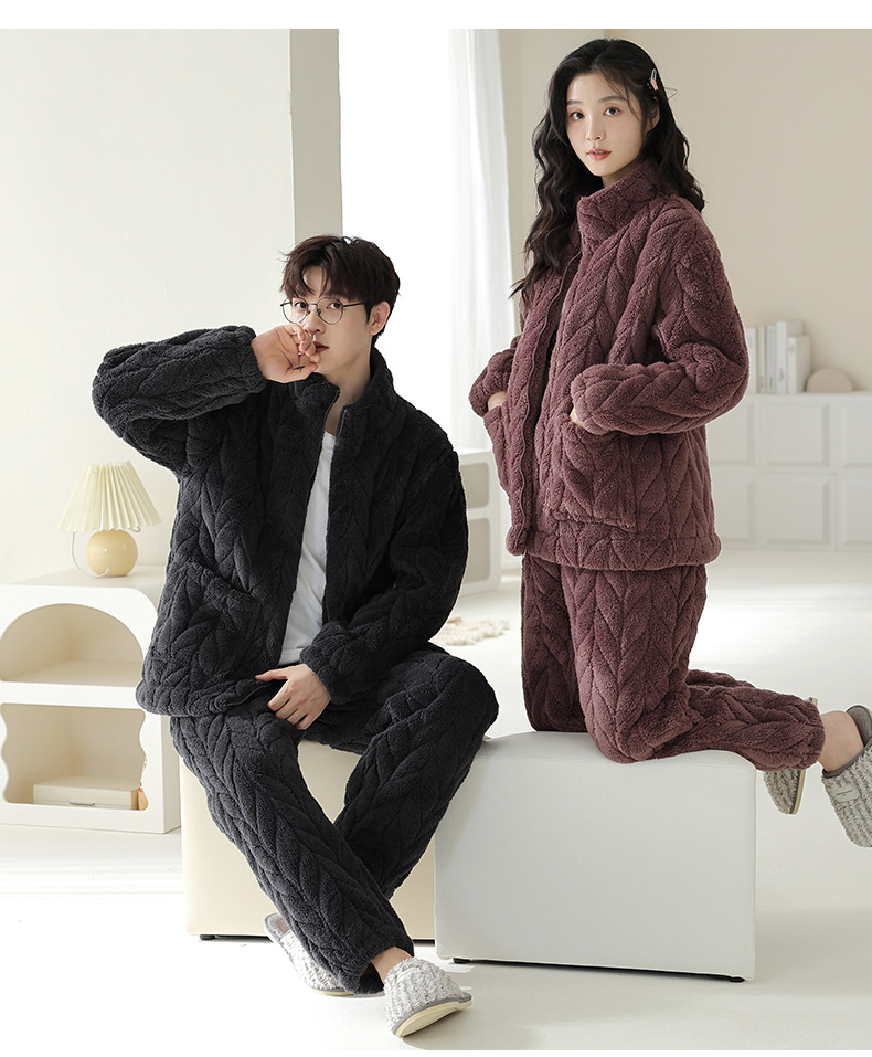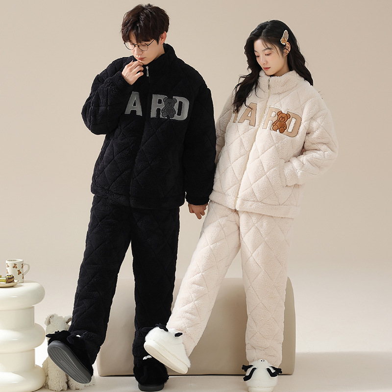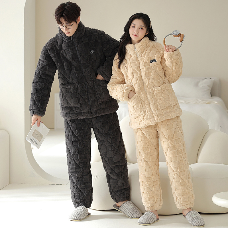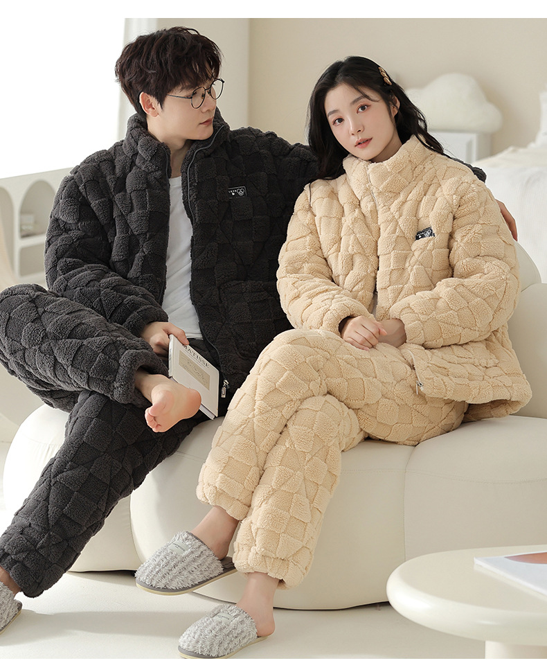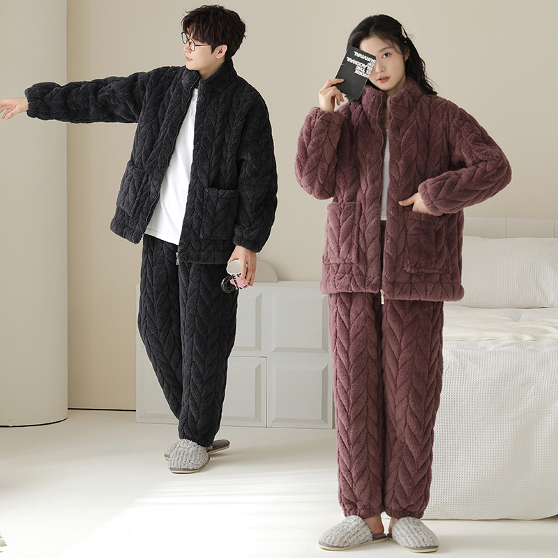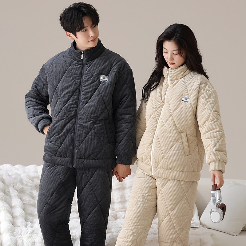 겨울 커플의 3 층 퀼트 파자마 여성 지퍼 카디건 후난 성 의류 두꺼운 따뜻한 남자 홈 옷스토어 가기