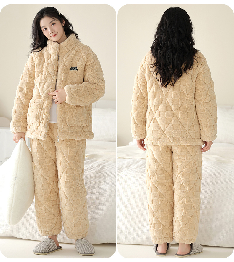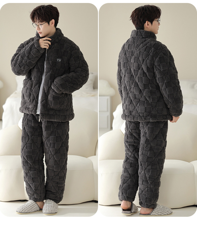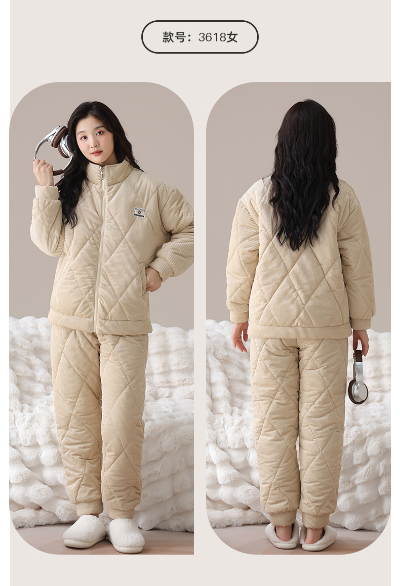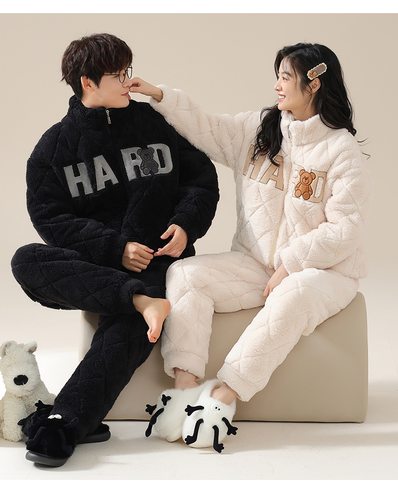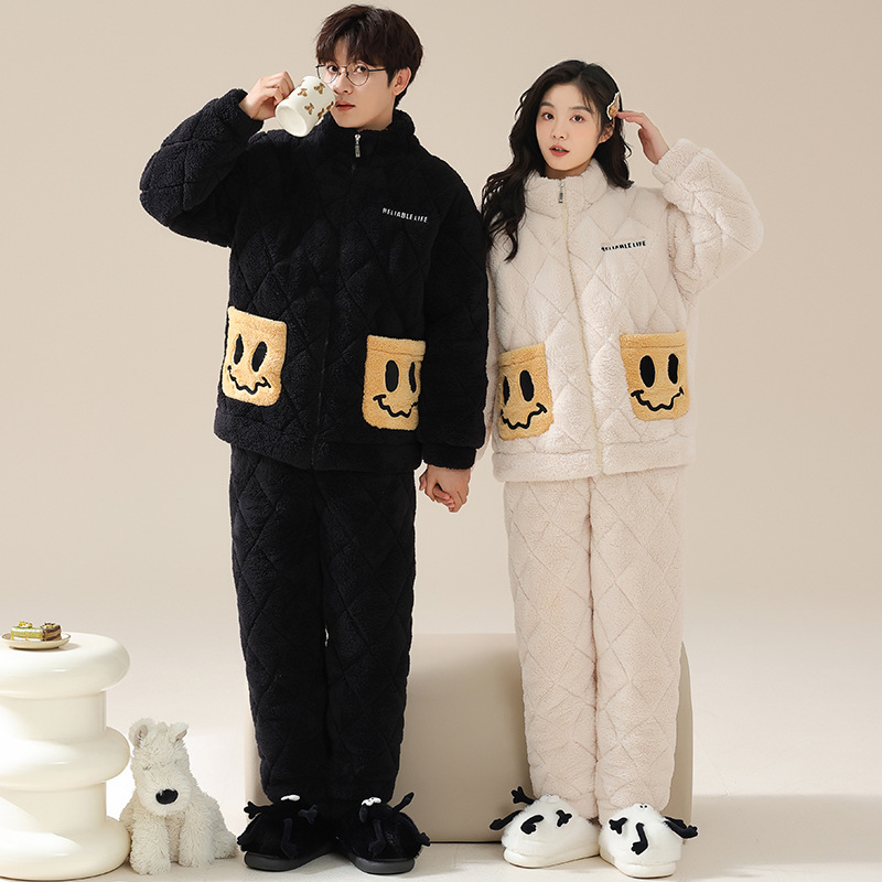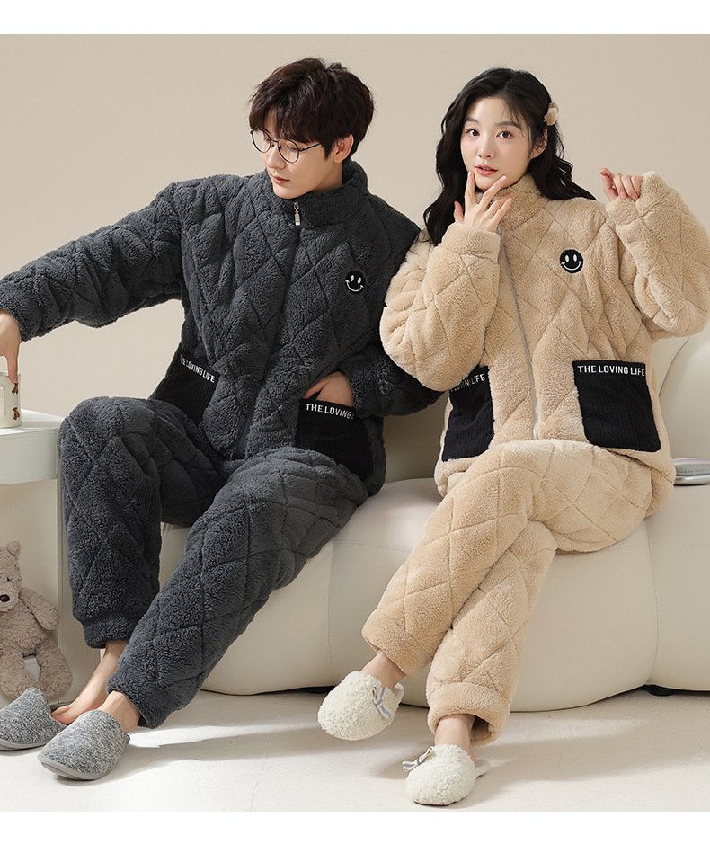 겨울 커플의 3 층 퀼트 파자마 여성 지퍼 카디건 후난 성 의류 두꺼운 따뜻한 남자 홈 옷스토어 가기