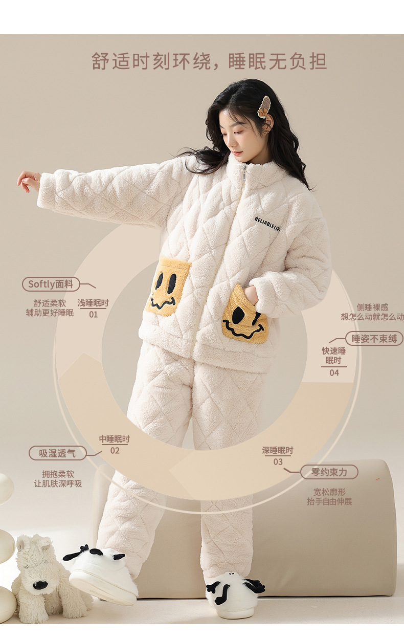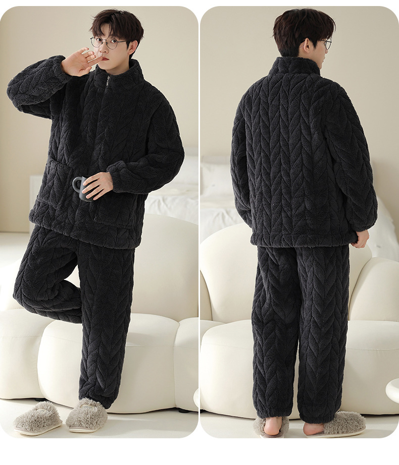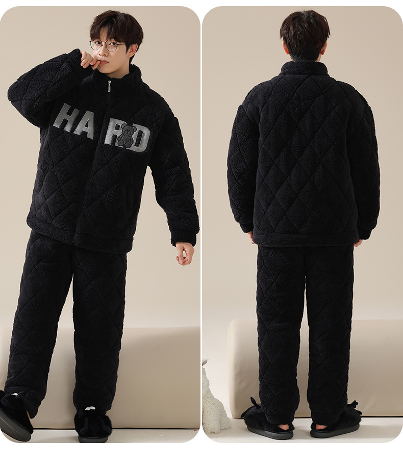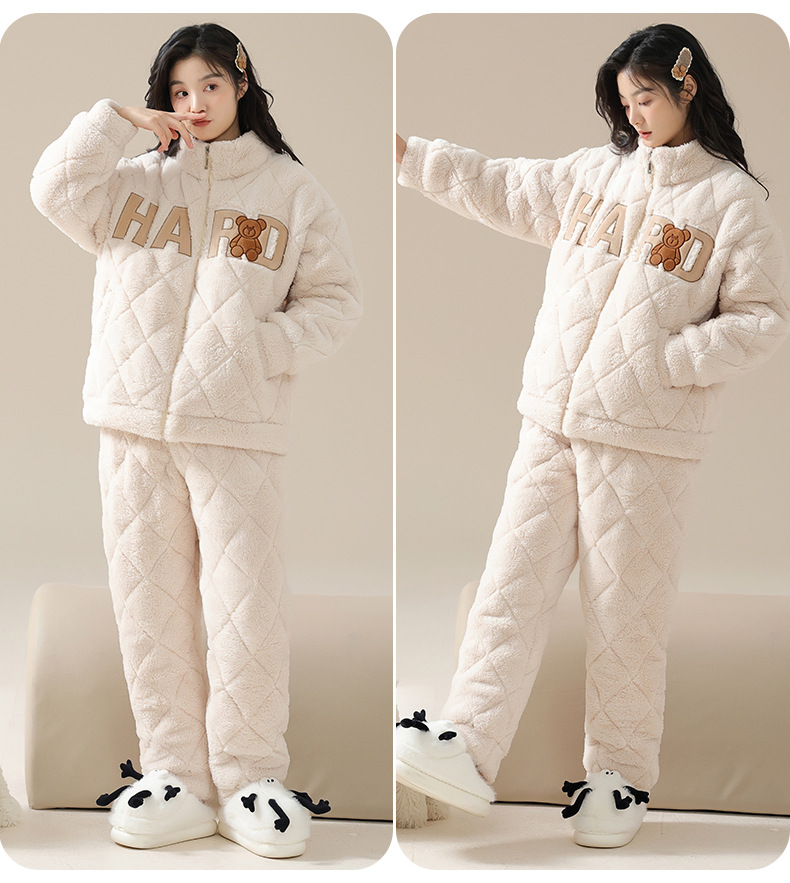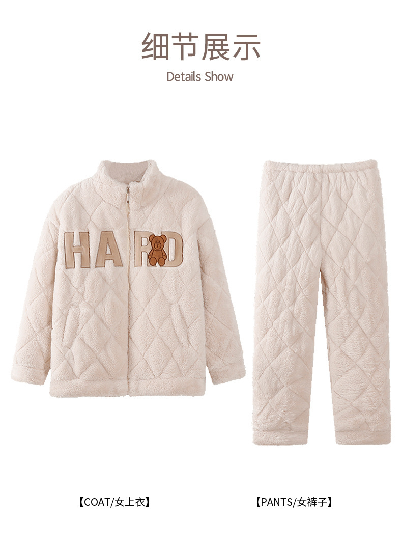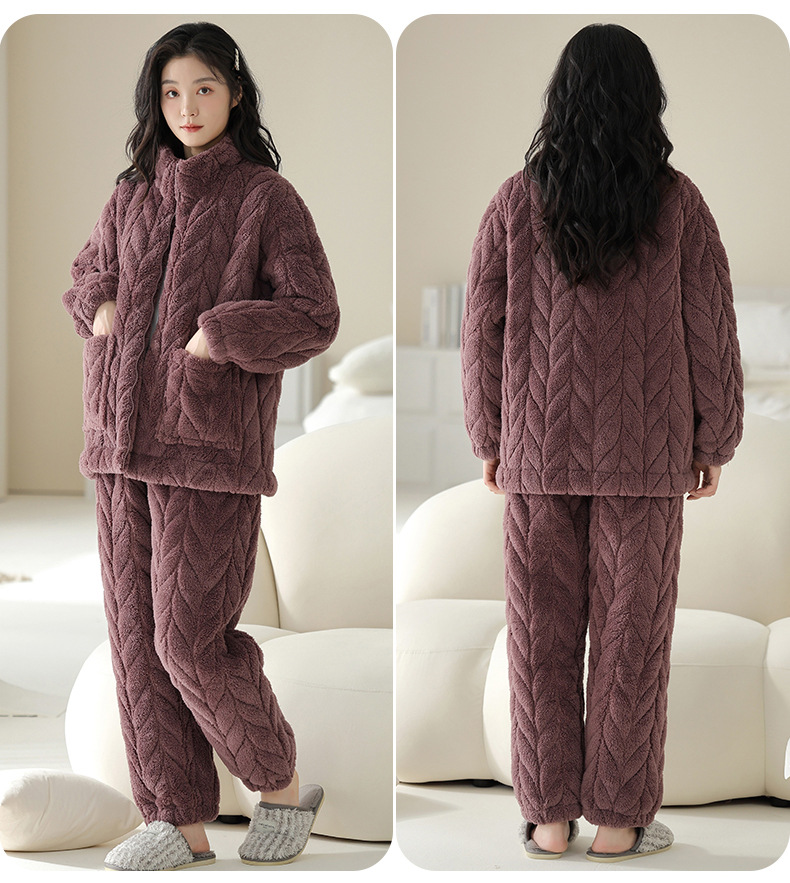 겨울 커플의 3 층 퀼트 파자마 여성 지퍼 카디건 후난 성 의류 두꺼운 따뜻한 남자 홈 옷스토어 가기
