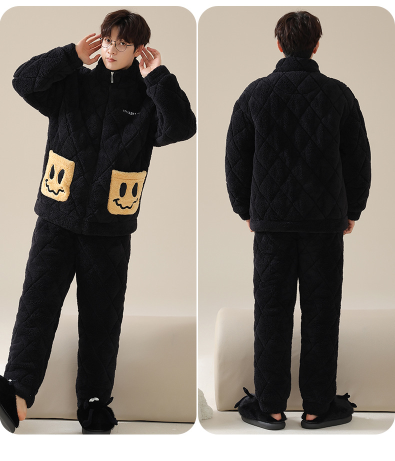겨울 커플의 3 층 퀼트 파자마 여성 지퍼 카디건 후난 성 의류 두꺼운 따뜻한 남자 홈 옷