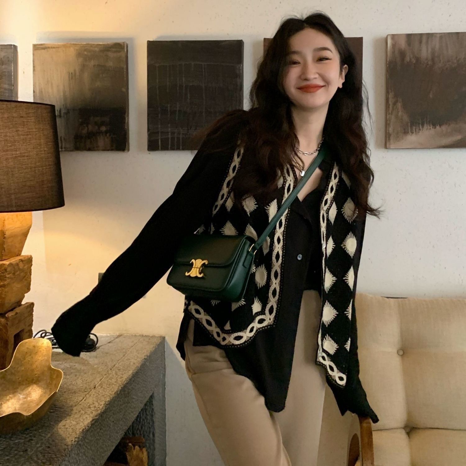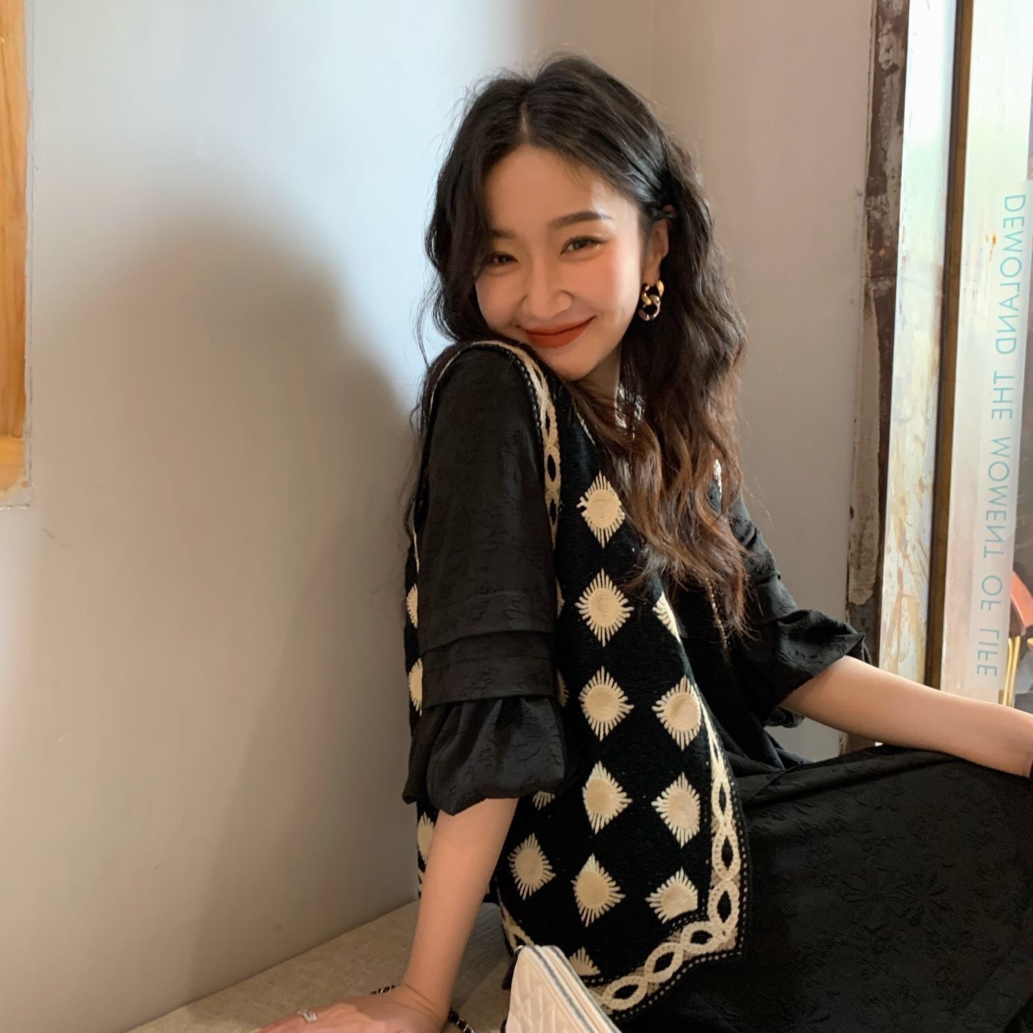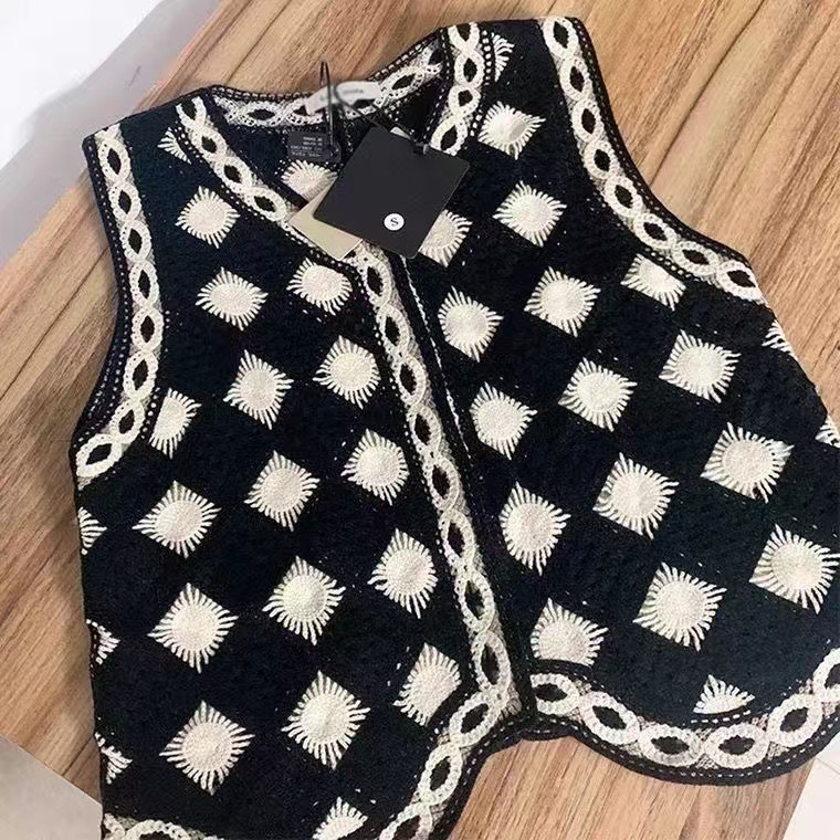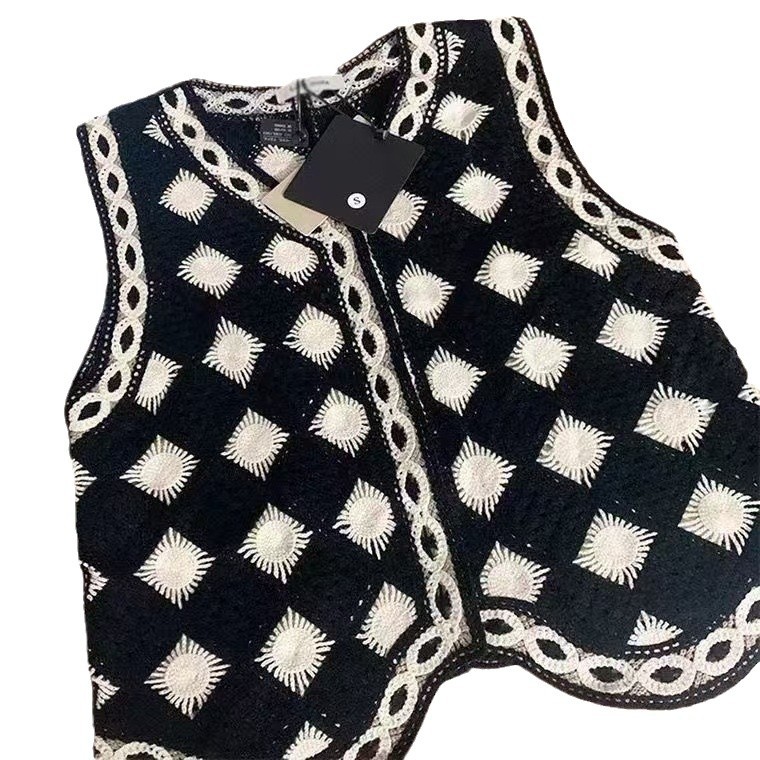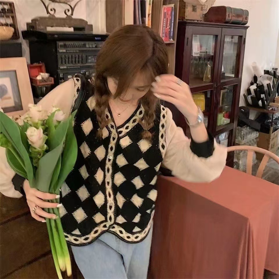 검은 마름모꼴 니트 크로 셰 뜨개질 중공 조끼 여성 가을 겨울 새로운 한국식 슬리밍 싱글 브레스트 탑스토어 가기
