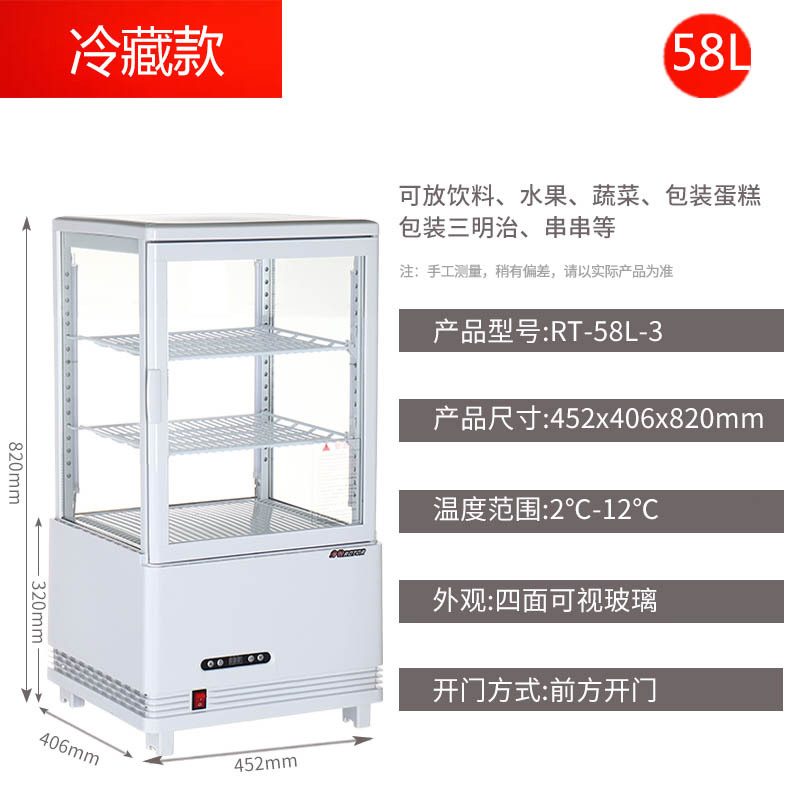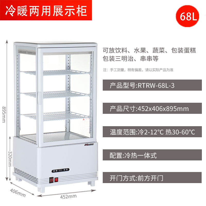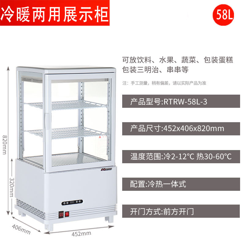 상업용 난방 및 난방 이중 목적 난방 절연 캐비닛 4 면 투명 유리 작은 냉장고 케이크 캐비닛 데스크탑스토어 가기