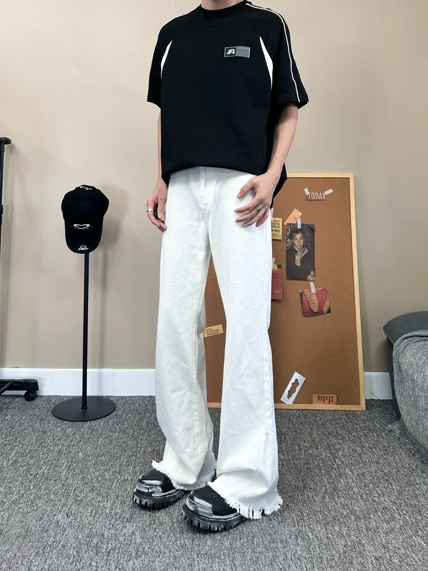 아메리칸 스타일 하이 스트리트 클렌핏 솔리드 컬러 청바지 남성 여름 새로운 슬림 룩 스태킹 센스 스트레이트 마이크로 롱 바지스토어 가기