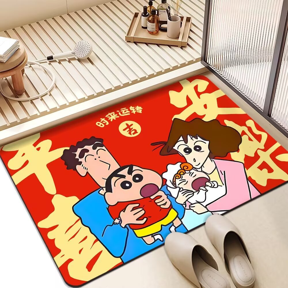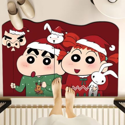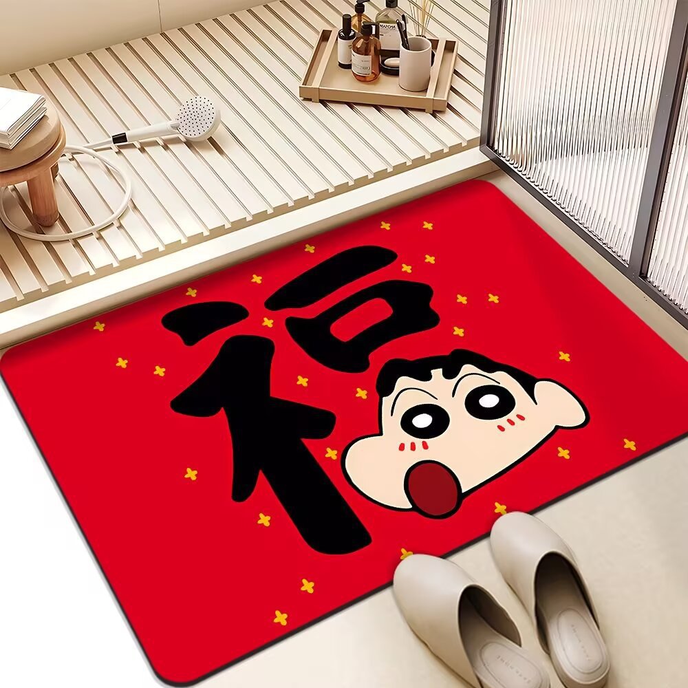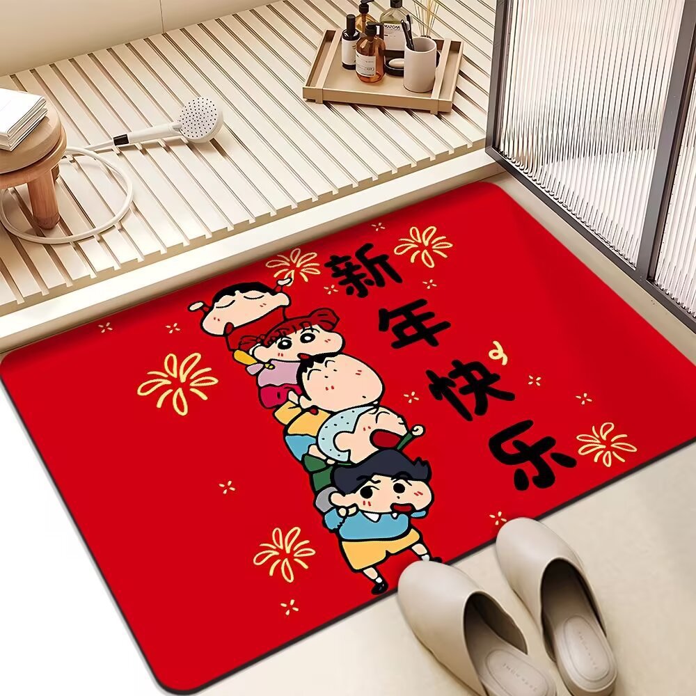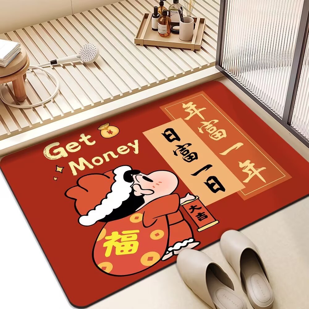 빨간 문 매트 크레용 작은 새해 축제 Diatom 진흙 매트 욕실 입구 문 매트 흡수성 미끄럼 방지 발 매트스토어 가기
