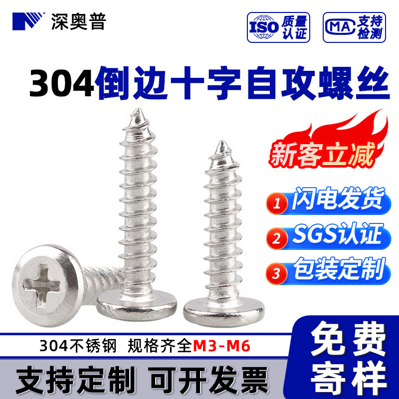 GB 304 거꾸로 된 가장자리 필립스 스크류 m3-m6 스테인레스 스틸 크로스 그루브 얇은 헤드 플랫 헤드 셀프 태핑 스크류 패스너