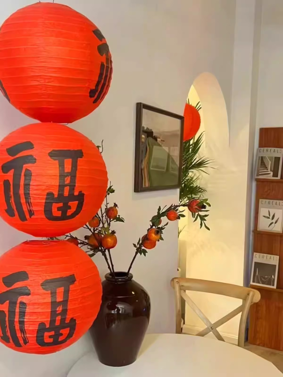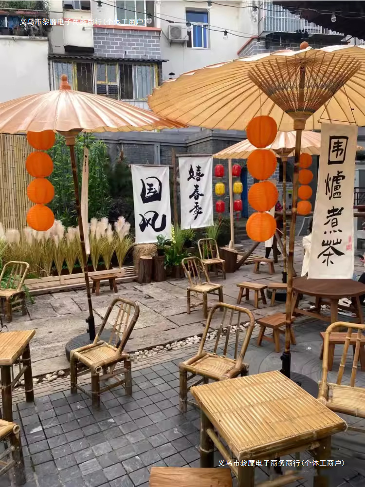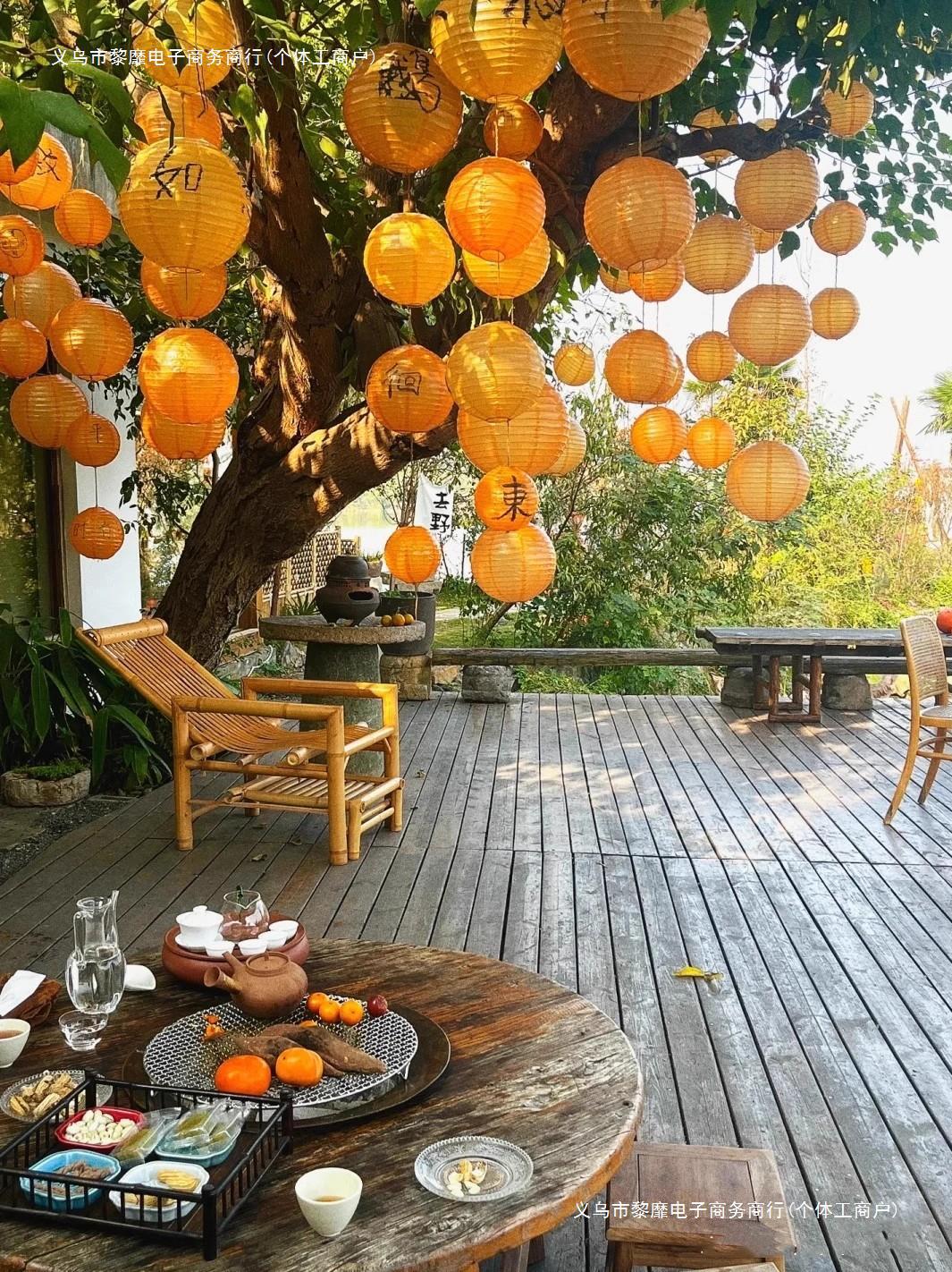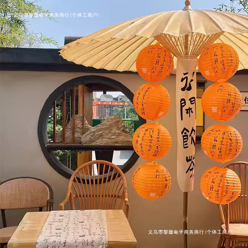 오븐 요리 찻집의 안뜰 장면은 골동품 중국 스타일의 국가 조수 오렌지 종이 랜턴 행운의 소품 랜턴으로 장식되어 있습니다.스토어 가기