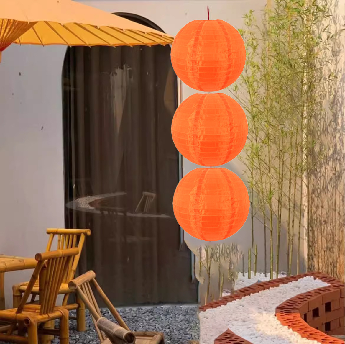 • 30cm 주황색 서예 등불 3개, 플러그인 모델, 연장 코드 5m 개 포함